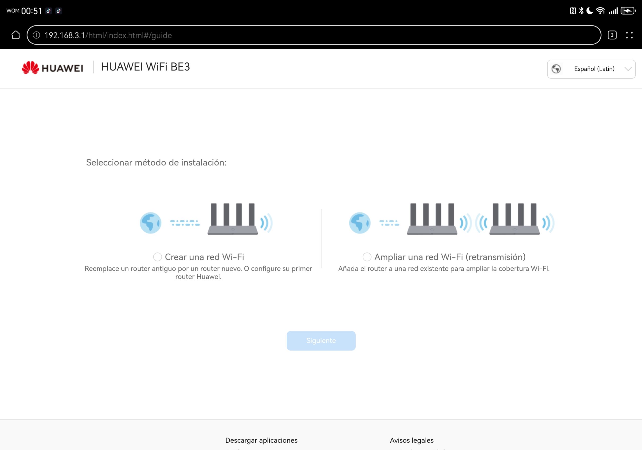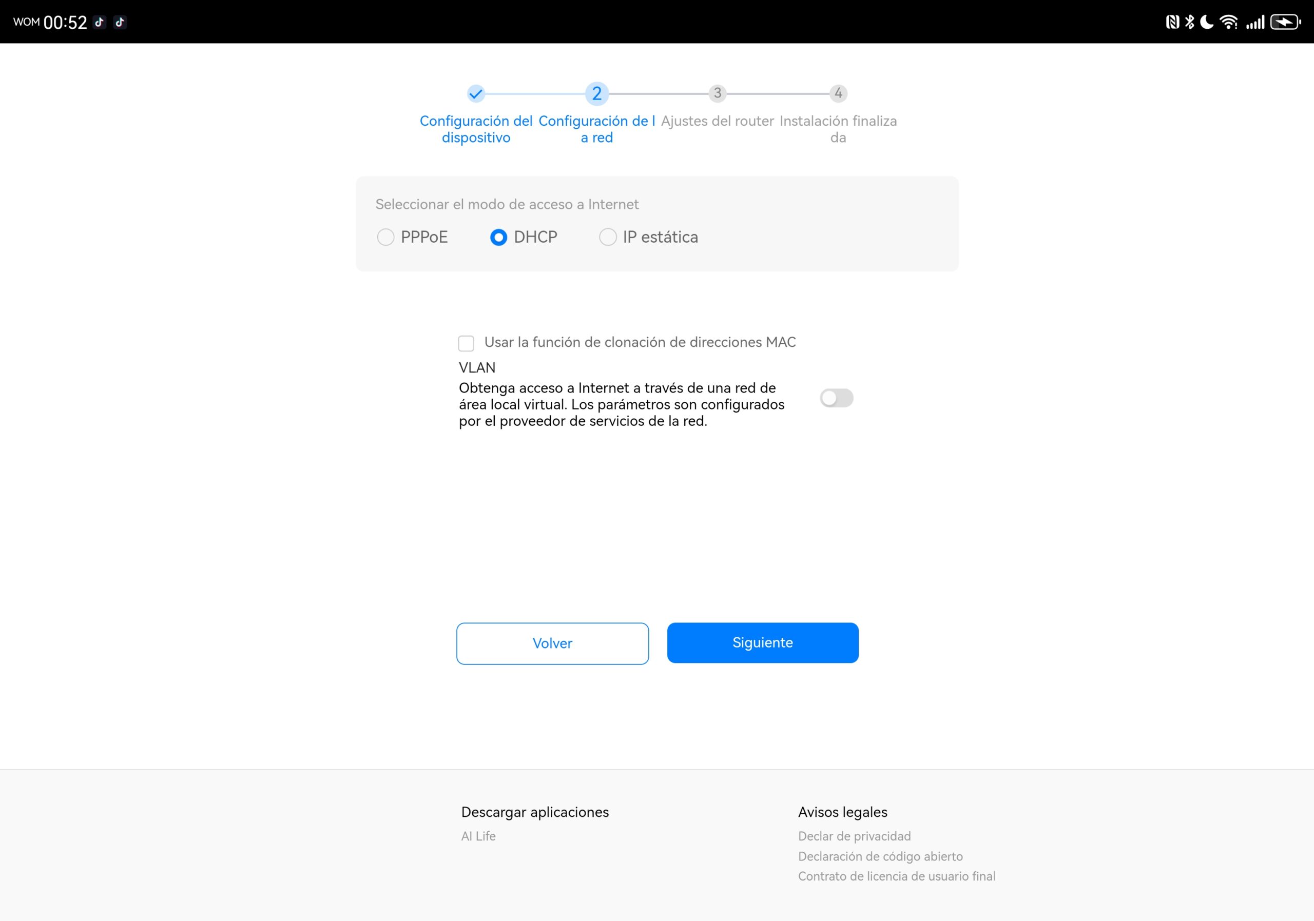 Tras encender el equipo, el router verificará primero si tienes un cable de red conectado o no, ya que, en caso de no tener ningún cable, te ofrecerá la opción para actuar como un repetidor Wi-Fi. Sin embargo, si detecta el cable de red, identificará el tipo de configuración que tiene el router de tu proveedor de internet.