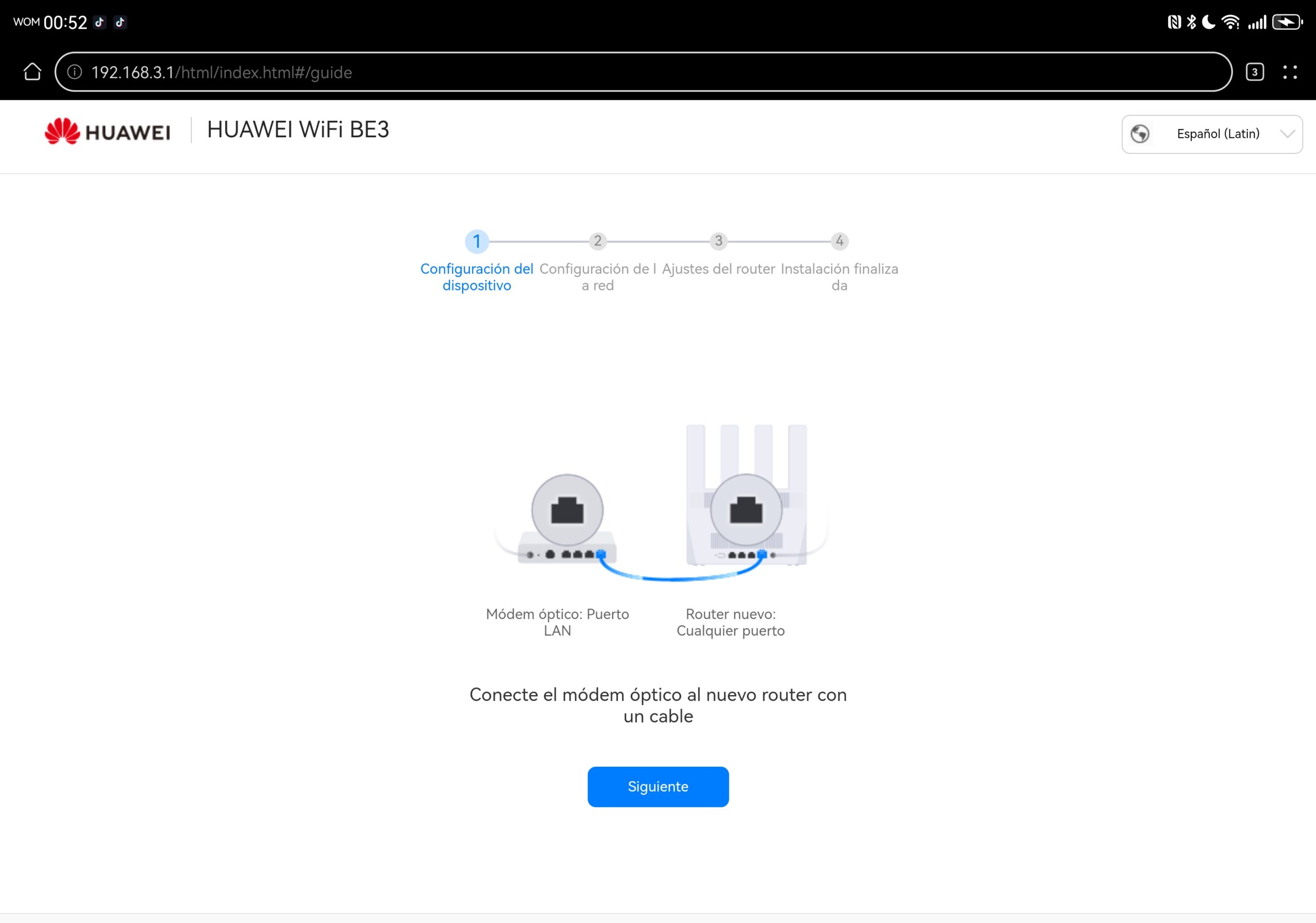 La puesta en marcha del HUAWEI Wi-Fi BE3 resulta rápida y accesible, incluso para usuarios sin experiencia previa. Basta con conectar el cable del proveedor a cualquiera de sus puertos Ethernet, incluyendo uno compatible con hasta 2.5 Gbps, aunque el beneficio dependerá de la velocidad contratada con el operador.