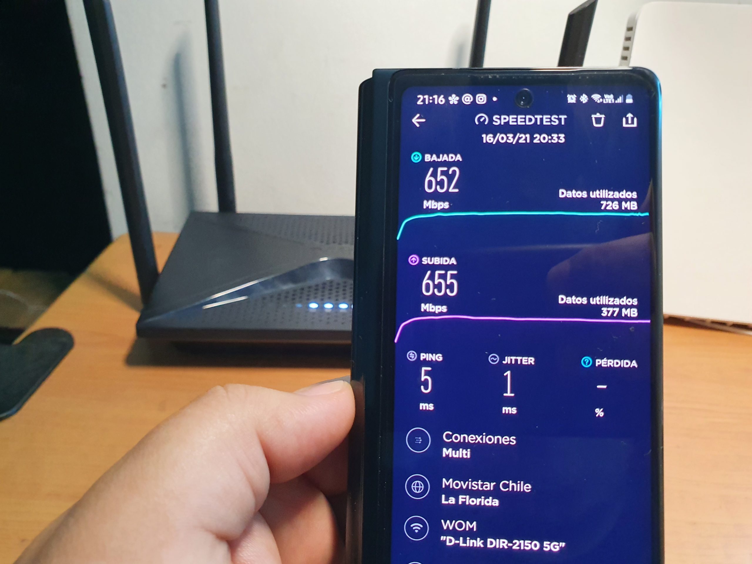Mi proveedor de internet en esta oportunidad es WOM Fibra Óptica de 600 Mbps simétricos, y al estar al lado del router, recibía dicha velocidad sin problemas en mi dispositivo de pruebas (un Galaxy Z Fold 2) cuando me encontraba conectado a la red 5 GHz.