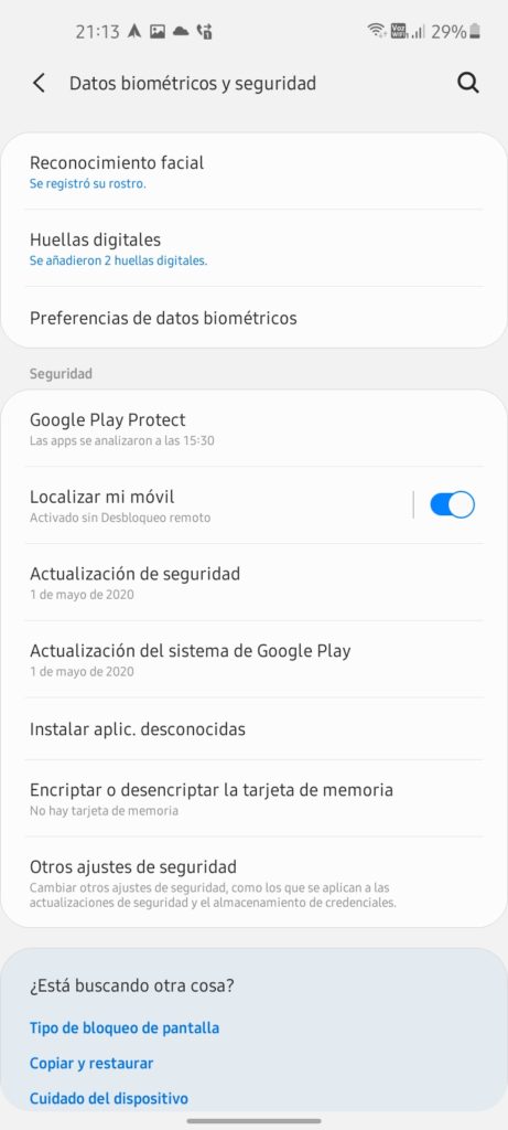 El parche de seguridad que tenía el equipo al momento de probarlo correspondería al mes de mayo del 2020, mientras que la actualización del sistema de Google Play estaba actualizada al mes de mayo del 2020.