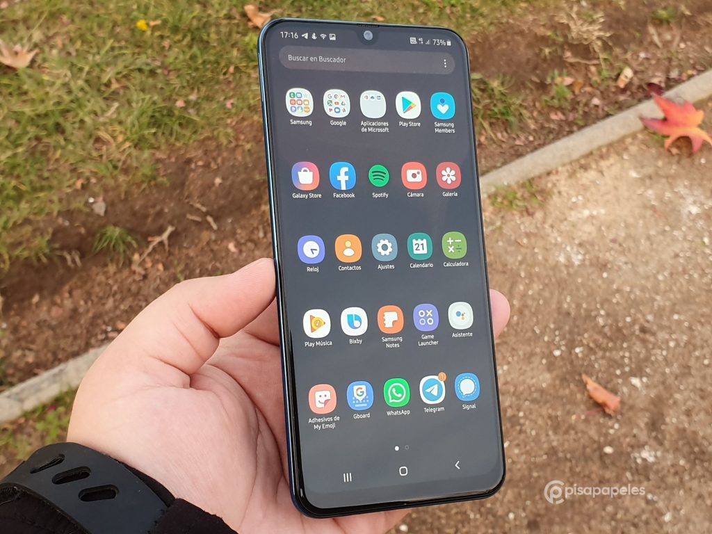Comenzando por su pantalla, te cuento que estamos ante una Super AMOLED de 6,4 pulgadas, con resolución Full HD+ de 1080 x 2340 pixeles, aspecto 19.5:9, y cuenta con un recorte en la pantalla con forma de gota de agua, a lo que Samsung lo llama como Infinity-U. Todo lo anterior cuenta con protección de Corning Gorilla Glass 3.