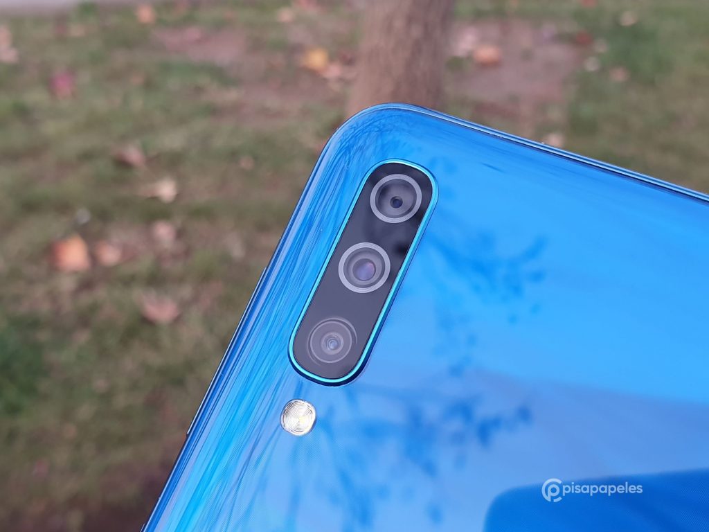 El Samsung Galaxy A50 llega al mercado chileno con una triple cámara principal, la cual está compuesta por un sensor de 25 megapixeles con apertura f/1.7 de 26mm, un segundo sensor de gran angular de 8 megapixeles con apertura f/2.2 de 13mm, y un tercer sensor de 5 megapixeles con apertura f/2.2 (depth sensor). Todo lo anterior está acompañado por un flash LED.