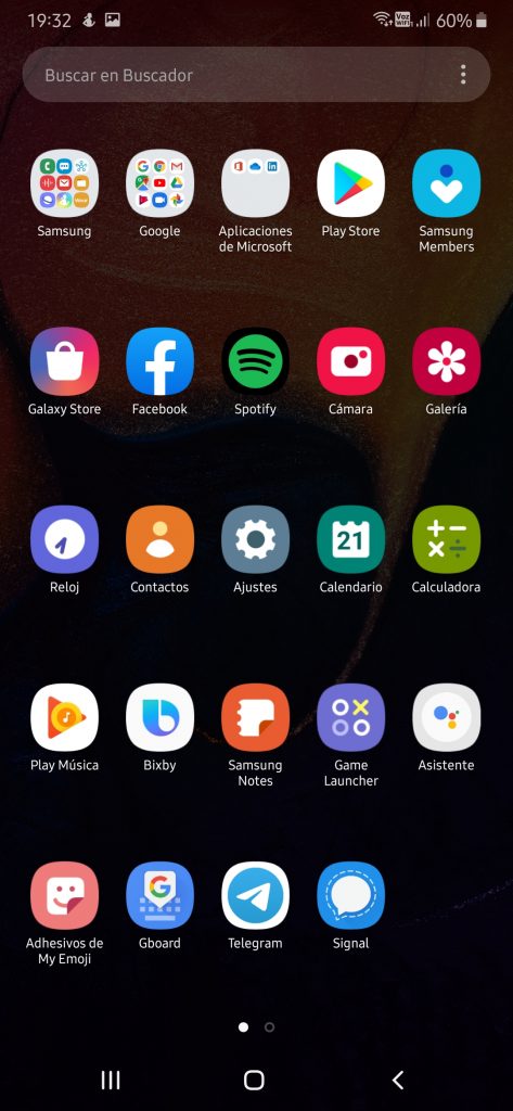 - Aplicaciones: Twitter, Facebook, Messenger, WhatsApp, Telegram, Instagram, YouTube, Gmail, Apple Music, Sismo Detector, Grillo, Google Pay, Signal, Samsung Health, Tapatalk, VTR Play, Swarm, Google Noticias, Net Monitor, entre otras.