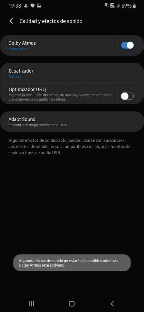 Con el Galaxy A50 podrás seguir usando tus propios audífonos alámbricos, ya que cuenta con conector 3.5mm y así disfrutar de una muy buena calidad de sonido, la cual está potenciada por la tecnología de Dolby Atmos, además de mejorar la resolución de música y videos con el Optimizador UHQ.