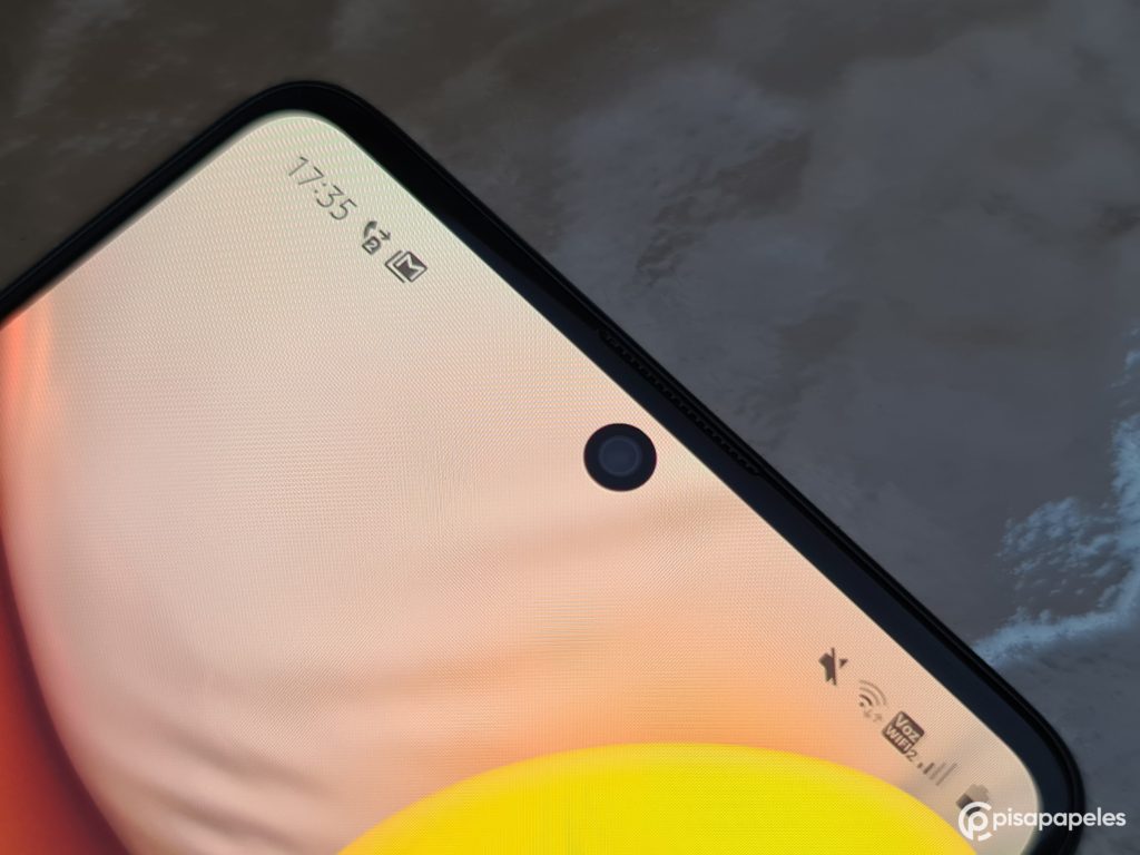 La pantalla cuenta con marcos bien reducidos, de hecho, ocupa el 87,2% de la parte delantera. Por este mismo lado veremos el agujero ubicado en la parte superior, en el lado central, donde se ubica su cámara frontal. Cabe agregar que en ningún momento me molestó aquel agujero, pasa totalmente desapercibido.