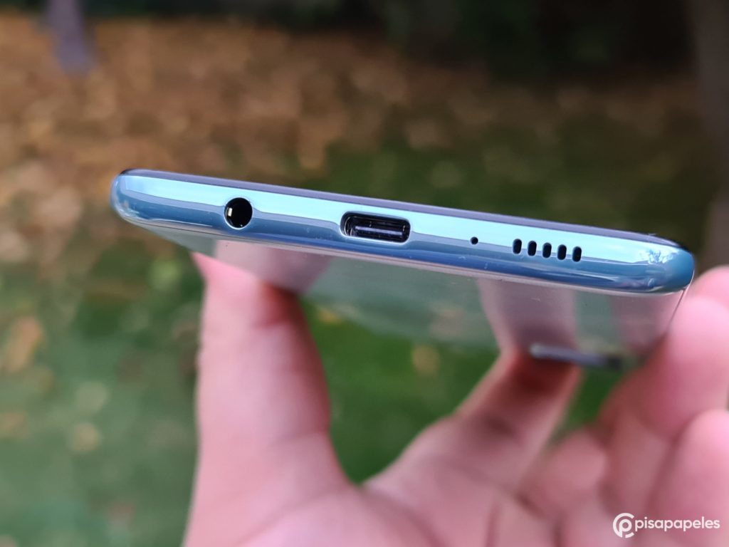 Si vemos que hay en los bordes, vamos a encontrarnos en la parte superior al micrófono secundario, por el lado izquierdo tenemos la ranura para tarjetas SIM y MicroSD, por el lado derecho tenemos tecla de encendido y bloqueo, junto con las teclas de volumen, y finalmente en el lado inferior tenemos conector 3.5mm, puerto USB Tipo-C, micrófono y altavoz principal.