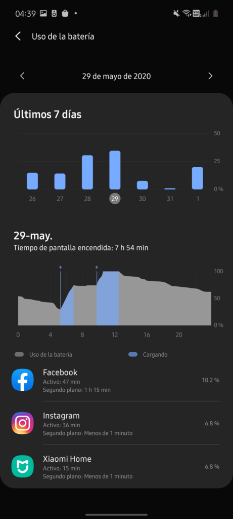 Tiempo de pantalla usada: 7 horas, 54 minutos aproximadamente.