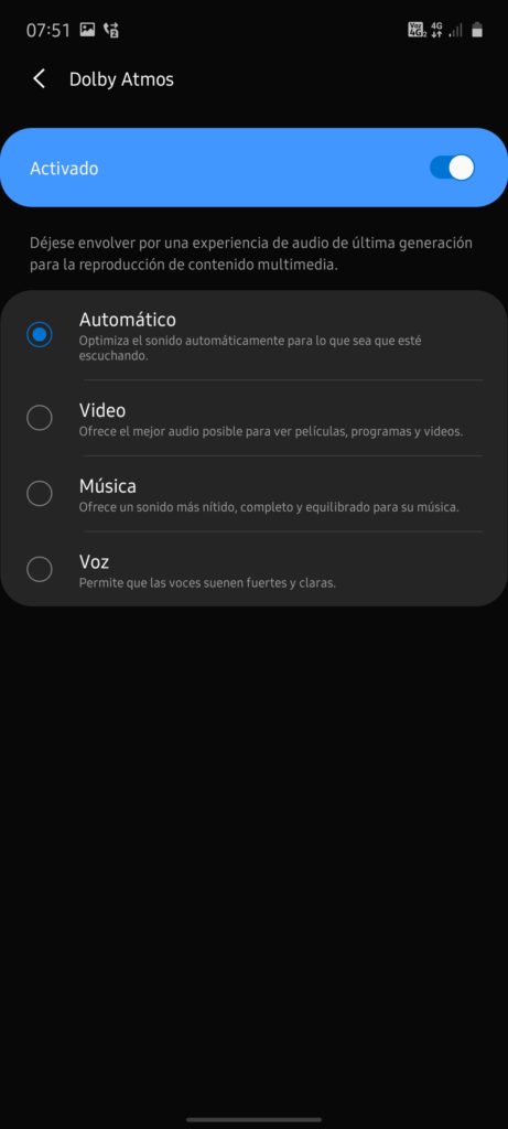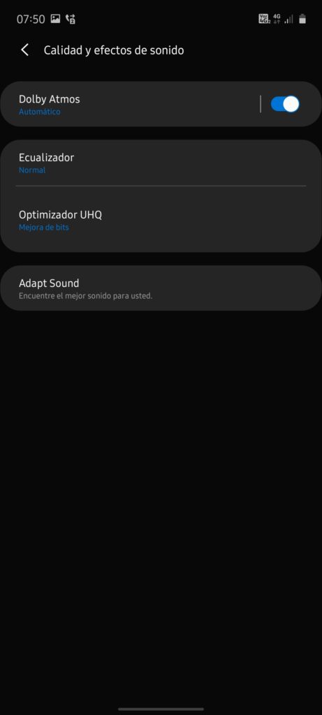 Nuestro protagonista sí cuenta con conector para audífonos 3.5mm, por lo que vamos a poder utilizar nuestros queridos audífonos alámbricos, o usar los que vienen en la caja. Eso sí, en este apartado el equipo gana puntos extras al incorporar audio Dolby Atmos, con lo cual mejora aún más el sonido. También incorpora el optimizador UHQ.