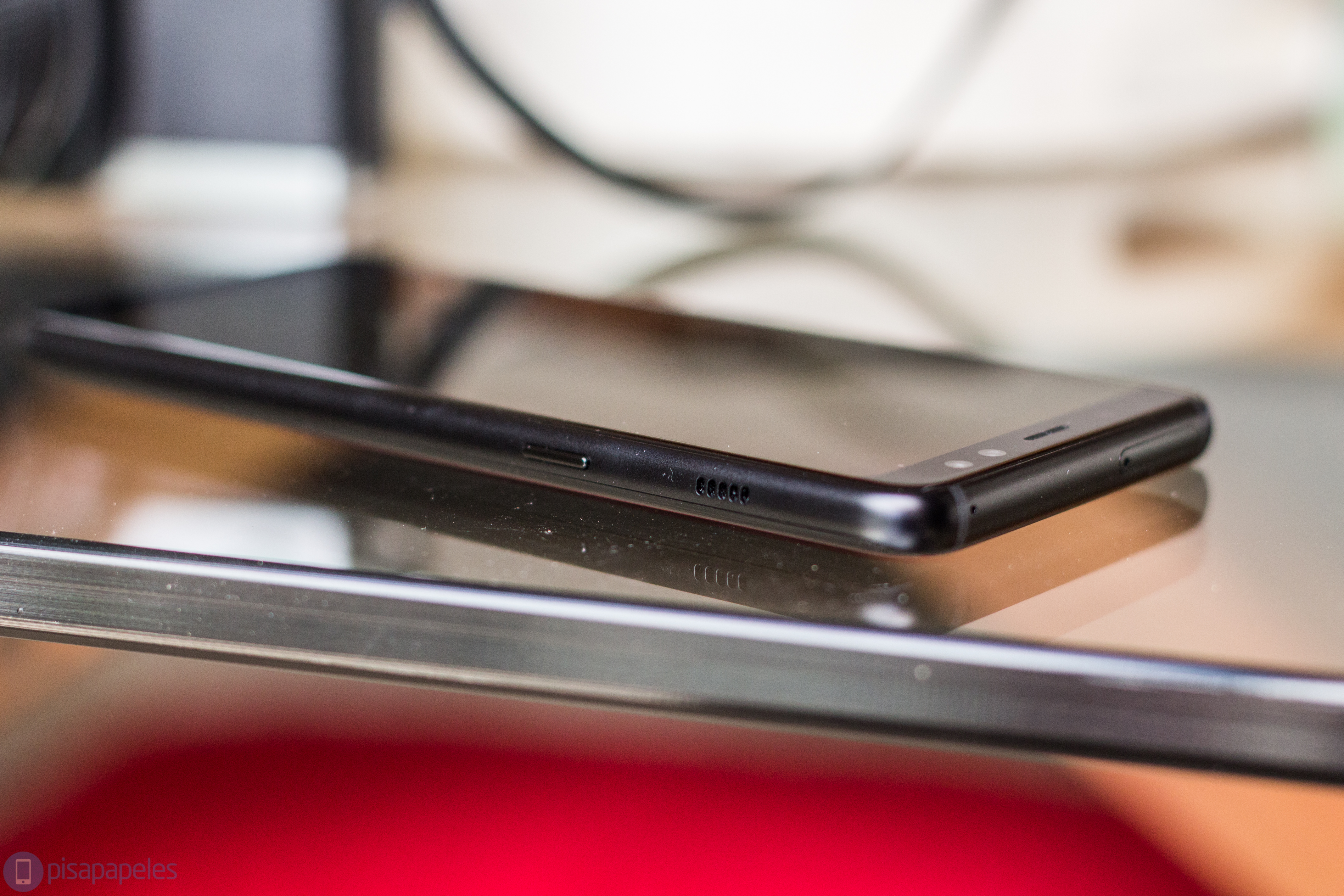 Tal y como dije, este Galaxy A8 es bastante similar en casi todos los aspectos al S8. Es bastante cómodo de agarrar en la mano –esto en parte gracias al formato 18:9–, aunque si es algo resbaloso en la mano, pero no es nada terrible. Lo único que me molesta es la posición del parlante, el cual se ubica en el costado derecho del dispositivo, justo arriba del botón de desbloqueo. En mi caso, lo pasaba tapando cuando veía videos en posición horizontal, así que ojo con eso.
