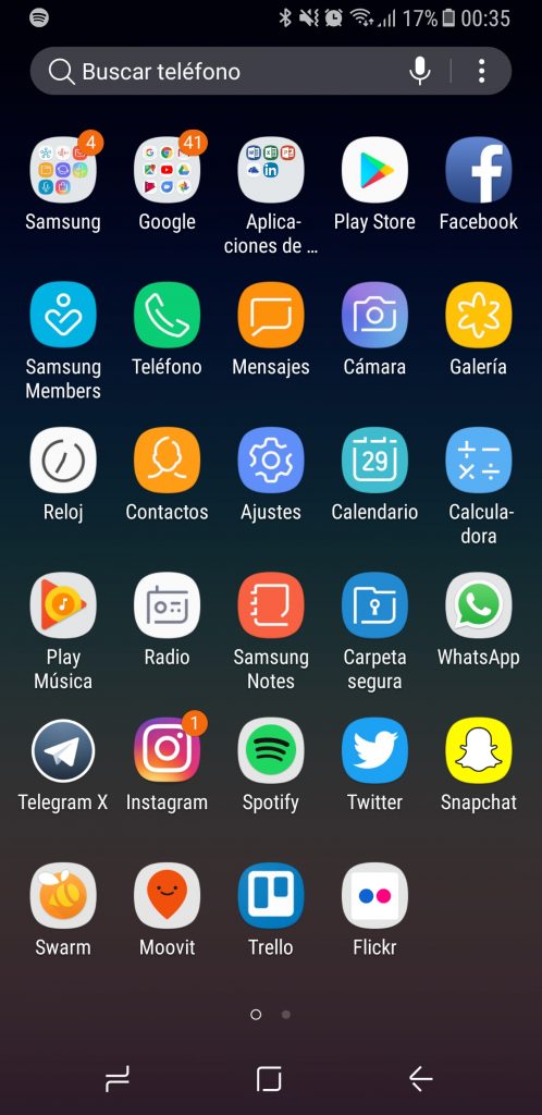 Como dije anteriormente, la personalización de Android aplicada por Samsung es bastante fuerte, todo es mucho más colorido y «redondo» que Android Puro, aunque tampoco trata de asemejarse a iOS como otras sí lo hacen. A pesar de que yo soy pro-Android Puro, he de admitir que S.E. es de las pocas capas de personalización que no me dan ganas de ponerle el Pixel Launcher (o similar) por defecto.