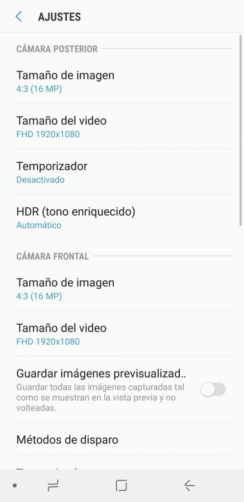 La aplicación de cámara es la misma que encontramos en los teléfonos más recientes de la surcoreana, la cual es bastante simple y rápida de utilizar. La selección de modos es algo menos variada que sus hermanos de gama alta, y el modo manual apenas deja configurar el ISO y el balance de blancos. También contamos con Bixby Vision para poder identificar lo que estamos viendo con la misma.