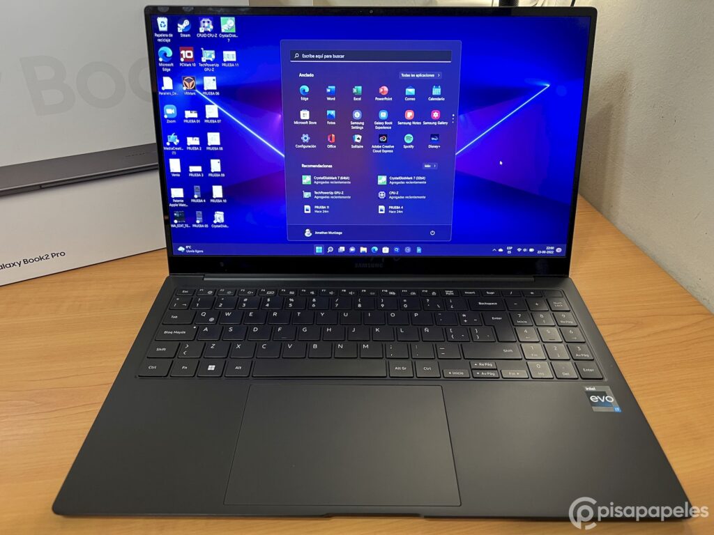 La Galaxy Book 2 Pro es un dispositivo algo grande debido a su pantalla de 15,6 pulgadas en formato panorámico y que a simple vista pareciera ser pesado, pero esto último no es así, ya que es tan liviano como un MacBook Air, lo cual se agradece bastante.