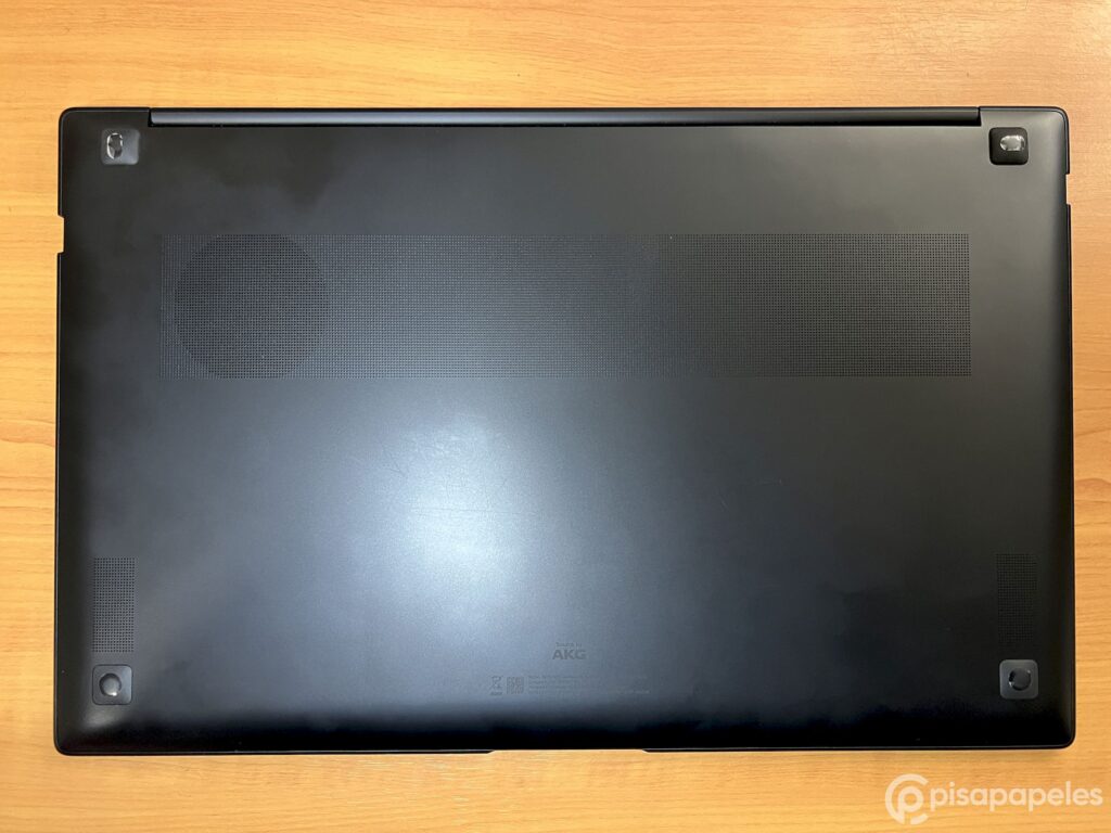 El Galaxy Book 2 Pro cuenta con dos altavoces ubicados en la parte inferior del equipo. Es una mala ubicación si usamos el portátil en la cama porque el sonido se tapará. Sin embargo, si usamos el equipo en una superficie plana, el sonido no se tapará gracias a unas bandas que le dan un poco de altura al PC, y así también dejar pasar la ventilación.