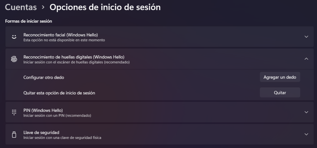 Como habrás visto en el apartado de diseño, el portátil tiene un lector de huellas incorporado en el botón de encendido del equipo, el cual puede configurarse con Windows Hello.