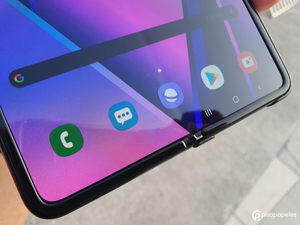 Al ser un equipo plegable, estamos ante una pantalla flexible y por el momento las pantallas flexibles tienen una cubierta de plástico como lo es en el caso de nuestro protagonista. Por lo mismo, se nota el doblez que queda al medio de la pantalla, incluso puedes sentirlo si pasas el dedo por esa zona.