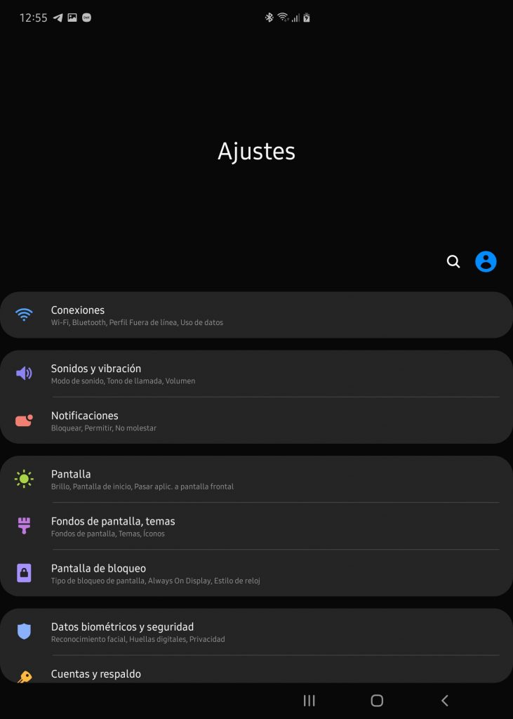 El sistema ofrece el mismo menú de ajustes que será válido para ambas pantallas, como el brillo, filtro de luz azul, el modo noche, el modo de pantalla (para elegir entre Vívido o Normal, además de la temperatura), tamaño de fuente y de pantalla, entre otros ajustes.