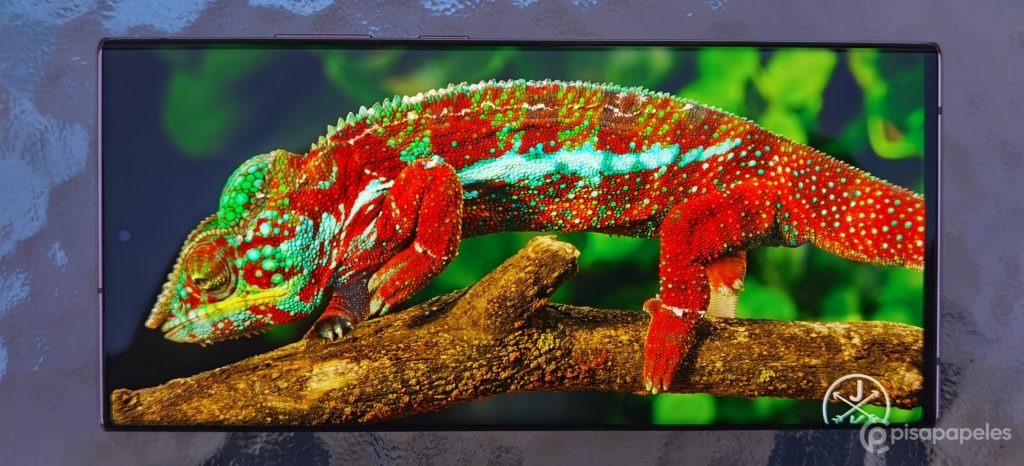 Como te mencioné al inicio, esta pantalla tiene una tasa de refresco de 120 Hz, pero a diferencia del Galaxy S20 Ultra, acá los 120 Hz son adaptables. Por ejemplo, si estamos leyendo, la tasa de refresco baja al mínimo para ahorrar energía, mientras que, si jugamos o vemos algún video, la tasa de refresco sube al máximo. Si vemos películas a 24p, la tasa de refresco se adapta a 24 Hz.