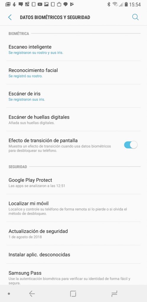 El equipo tiene una opción llamada Desbloqueo inteligente el cual hará uso del reconocimiento facial y escáner de iris a la misma vez. De esta manera si el reconocimiento facial no logra detectar tu rostro (porque puede existir poca luz) ahí entra a trabajar el escáner de iris.