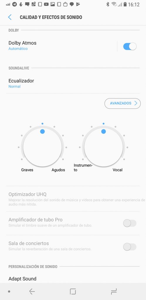 Ahora, si no tenemos archivos en alta resolución, también podemos activar el Optimizador UHQ para mejorar nuestras canciones y llevarlas a un nivel cercano al audio de alta resolución. Además tenemos efectos de audio envolvente, un ecualizador de 9 bandas totalmente personalizable, así como también puedes adaptar el audio de acuerdo a tus capacidades auditivas.