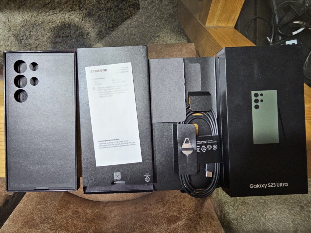 El packaging del S23 Ultra es bastante sencillo -- pues obviamente se sumaron a esta tendencia de sacar cargadores y otros aditamentos de la caja, so pretexto de ser más "ecológicos" (amigos, sabemos que es más por un tema de reducción de costos).