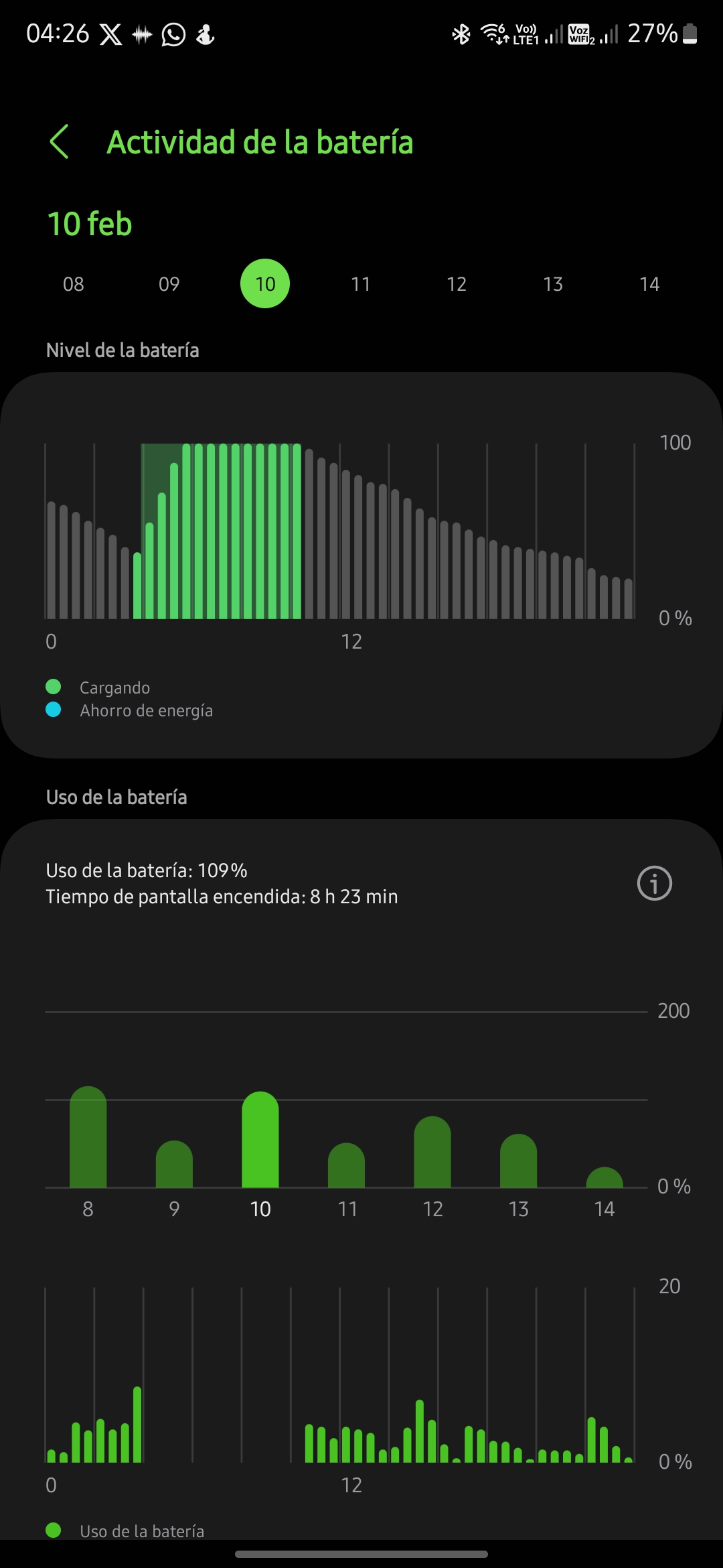 De esta manera, puedo decir que el Galaxy S24 Ultra me dio 8 horas aproximadamente de pantalla encendida. Sin embargo, la autonomía siempre dependerá netamente el uso que le de cada usuario.
