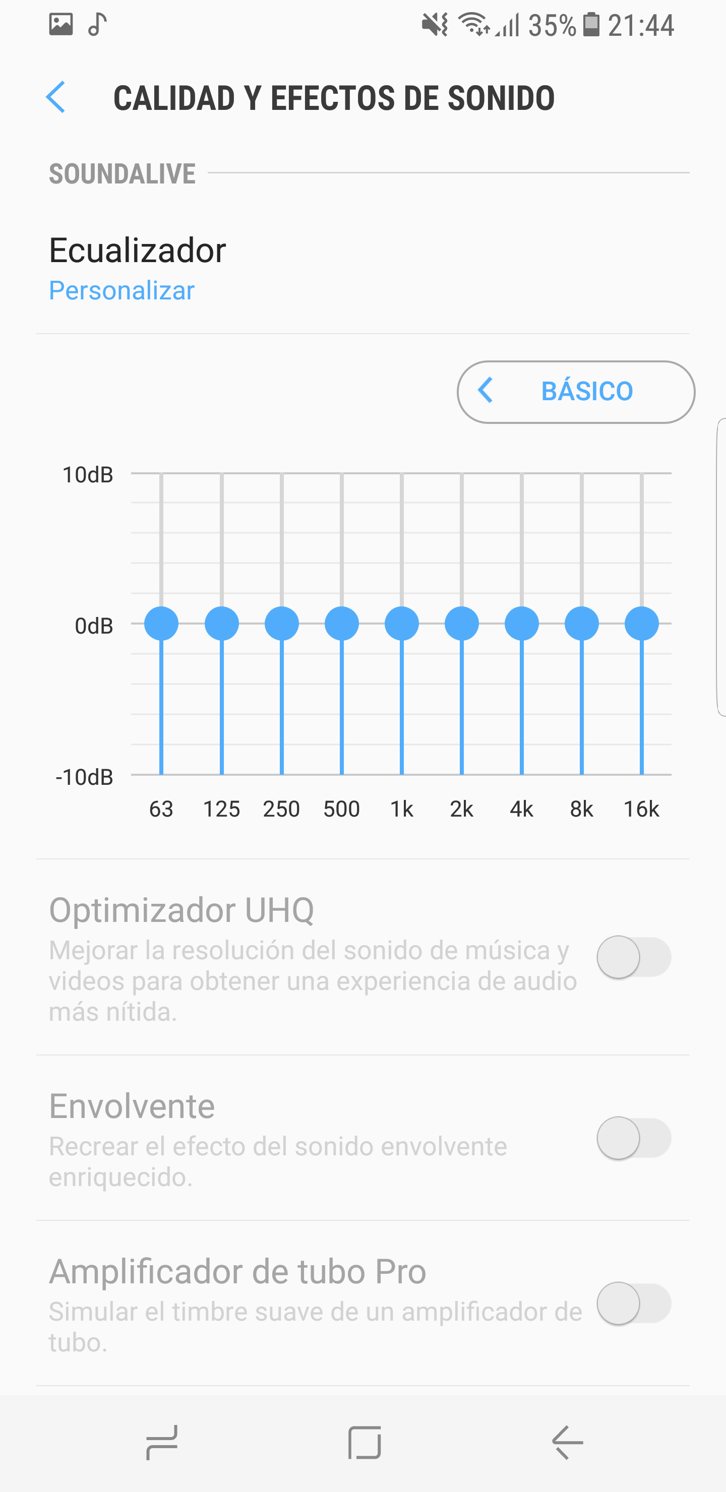 También podemos activar el Optimizador UHQ para mejorar nuestras canciones y llevarlas a un nivel cercano al audio de alta resolución. Tenemos audio envolvente y otros efectos, así como también puedes adaptar el audio de acuerdo a tus capacidades auditivas.