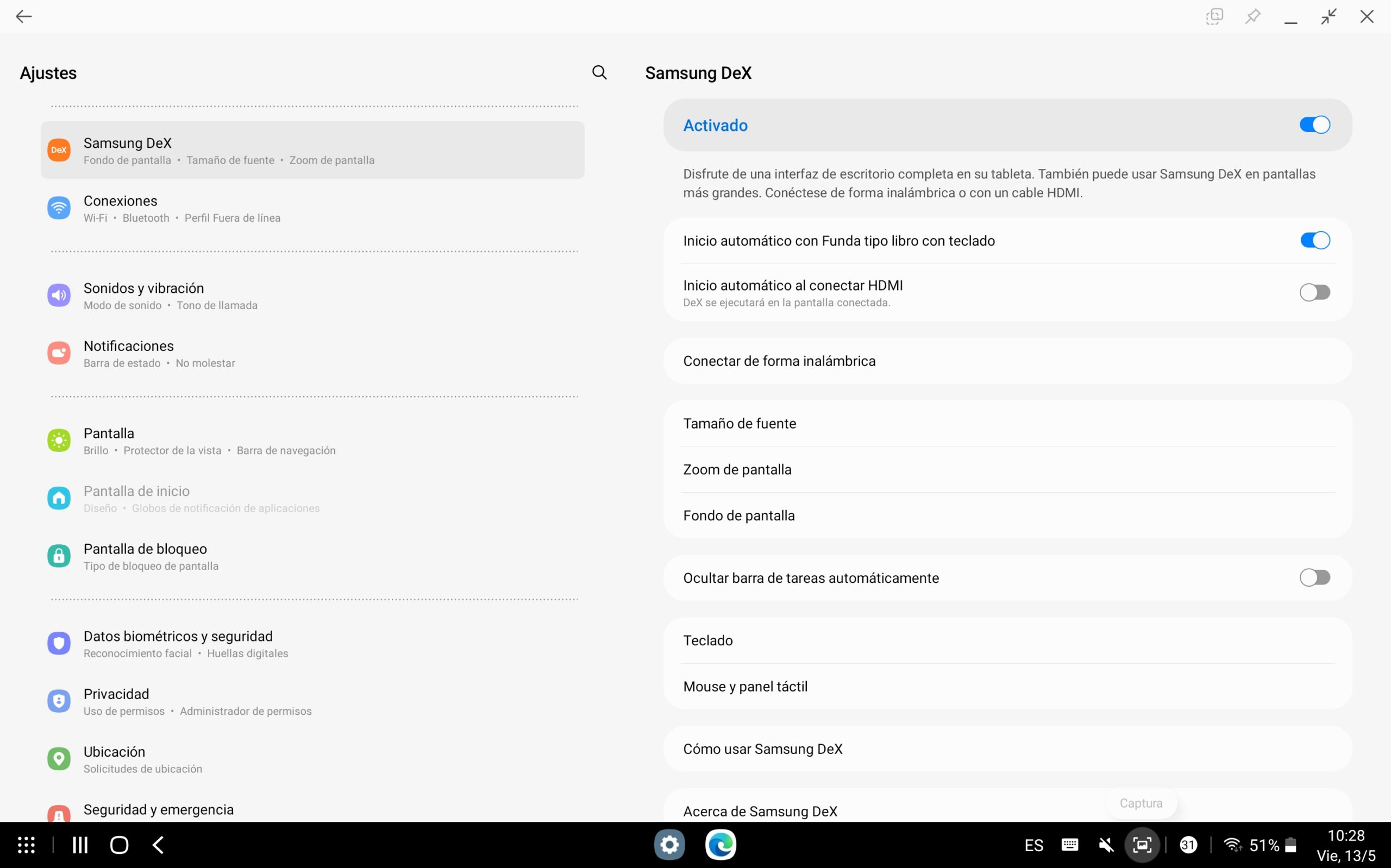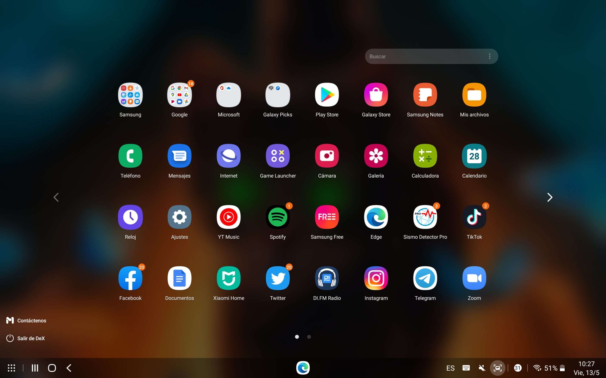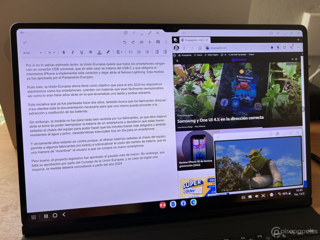 Luego tenemos el reconocido modo Samsung Dex, una interfaz de escritorio que nos ofrece una experiencia que nos resultará ideal cuando estemos trabajando con el teclado QWERTY porque obliga a que todas las apps se ejecuten en horizontal y de manera separadas por ventanas, como si estuvieses en el mismísimo Windows.