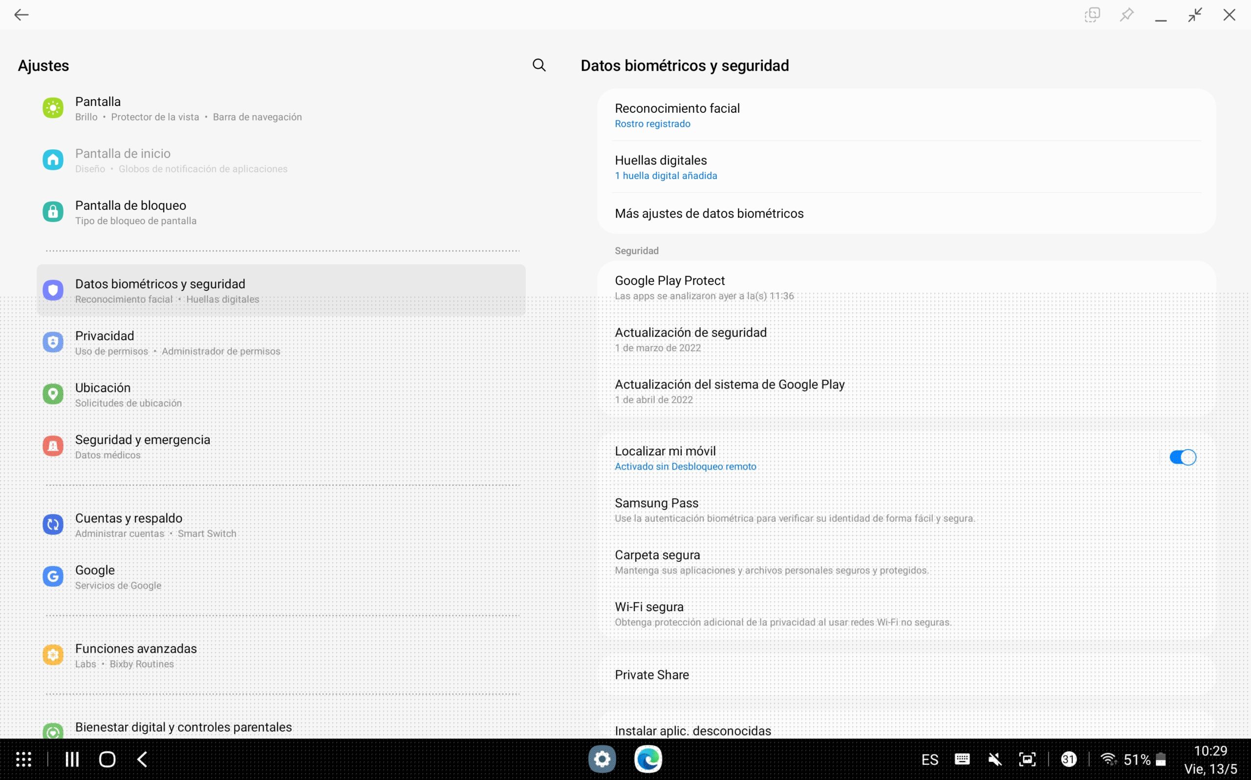 En este apartado tenemos varias posibilidades de mantener bloqueada nuestra tablet. La primera de ellas es utilizando el clásico desbloque facial que utiliza la cámara frontal para poder identificarte. Lamentablemente su punto negativo es que no funciona cuando hay poca luz.