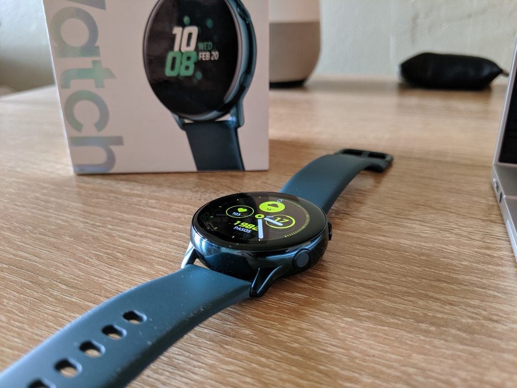 Tiempo después, Samsung presentó a nuestro protagonista del día de hoy, el Galaxy Watch Active viene con prestaciones reducidas si lo comparamos a su hermano mayor, pero cuenta con un enfoque mucho más deportivo y un diseño que por primera deja de lado el bisel rotatorio que Samsung utiliza en sus relojes, que permiten controlar parte de la interfaz.