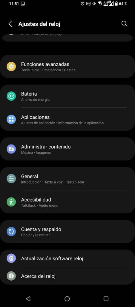 Pero acá no me detendré tanto, ya que positivamente el reloj es lo suficientemente autónomo para depender de la app del teléfono. En los aspectos que estamos obligados y que sí o sí debemos hacer uso de la aplicación, es para vincular nuestro reloj, sincronizar la cuenta de Google y/o Samsung para las copias de seguridad, revisar datos de salud, gestionar contenido, configurar un plan móvil si tenemos nuestro smartwatch con LTE y usar la utilidad para localizar nuestro reloj con su altavoz si lo perdemos de vista.