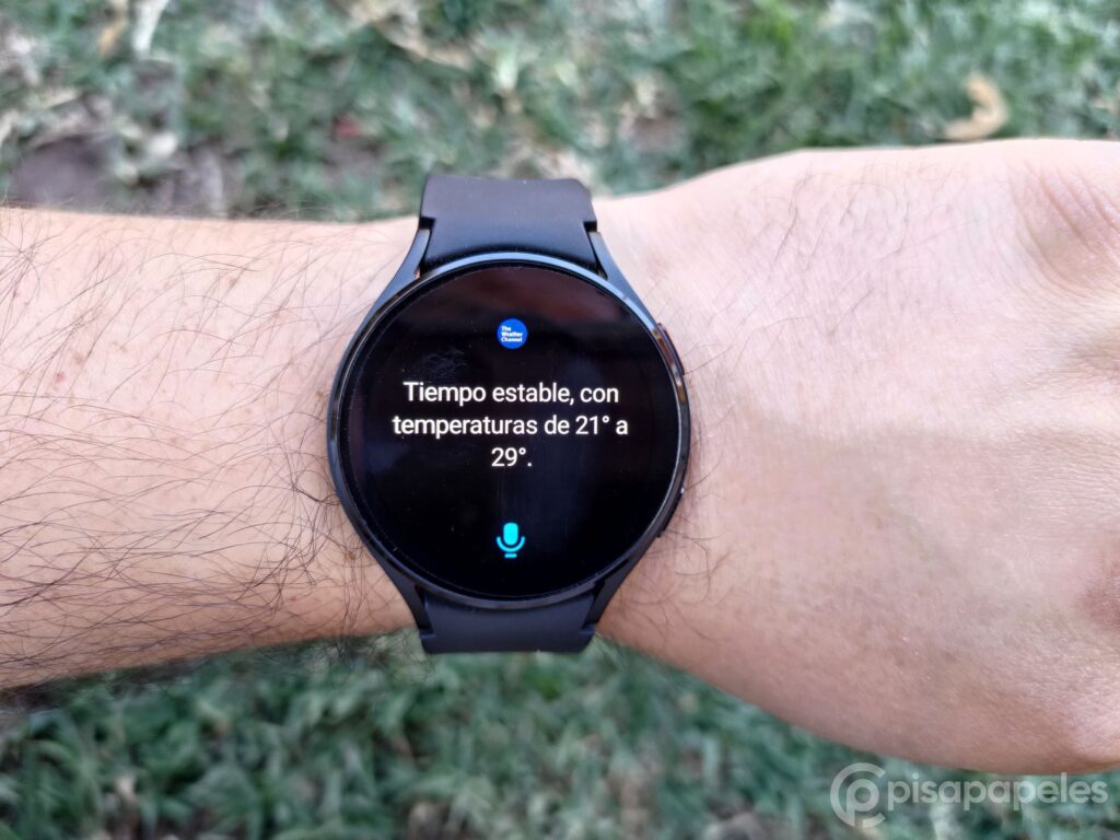 Respecto al asistente virtual, Samsung sigue apostando por Bixby en sus relojes. El cual sigue siendo algo limitado, ya que sólo está disponible en español de España, es algo lento y no entrega resultados con sonidos, sólo respuestas de texto en pantalla. Lamentablemente el Asistente de Google no viene integrado, pero ambas empresas ya confirmaron que llegará más adelante al Galaxy Watch4.