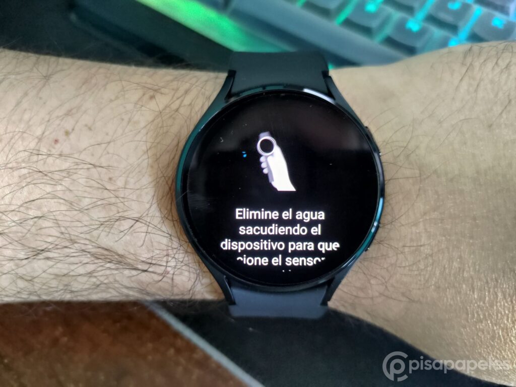 Ya contamos que el reloj tiene certificación IP68 para resistir al agua y polvo. Pero algo que me gustó mucho es que, si lo usamos para la natación, este cuenta con un bloqueo de pantalla para que no haya toques fantasmas al nadar. Y al deshabilitar el bloqueo, el reloj posee una utilidad para drenar el agua de los orificios por medio de ondas de sonido.
