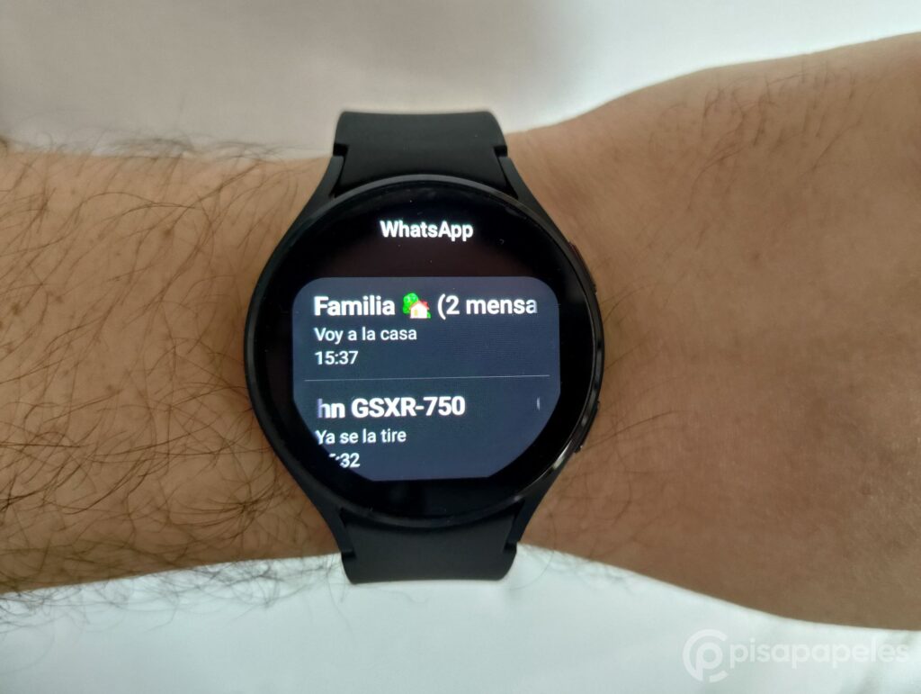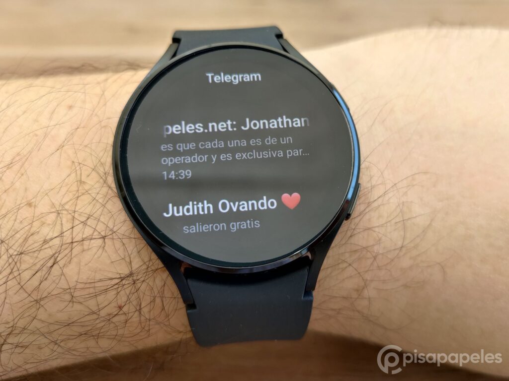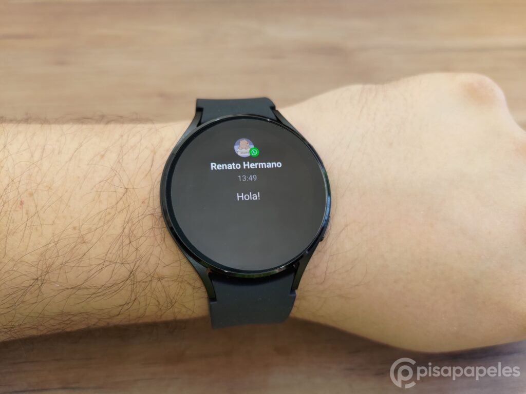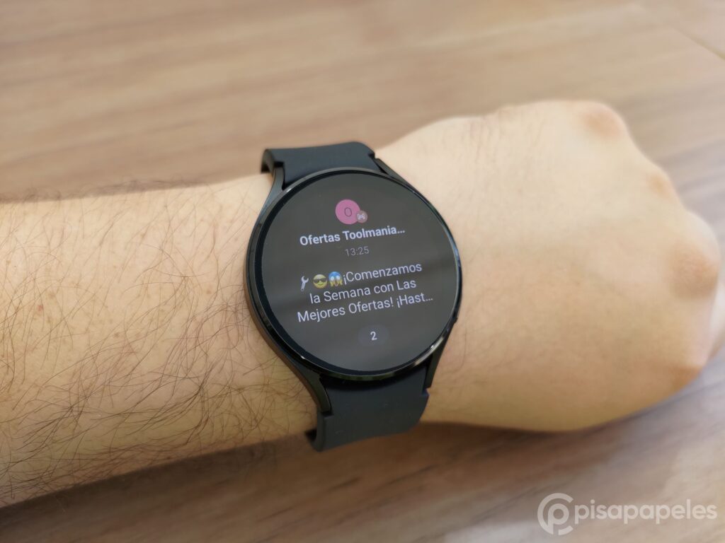 Una vez posicionados en la pantalla principal, si deslizamos hacia la derecha se nos mostrarán las notificaciones recibidas en el dispositivo. En este sentido Wear OS es uno de los mejores en lo que respecta a la gestión de notificaciones. Acá las podremos ver agrupadas por aplicaciones, lo que mantiene todo ordenado. Inclusive podemos responder de muchas formas: a través de la voz, teclado en pantalla, o escritura swipe deslizando el dedo. Tampoco tendremos compatibilidad de formatos, ya que podremos ver correctamente desde un simple emoji, stickers hasta fotos en la notificación del reloj.