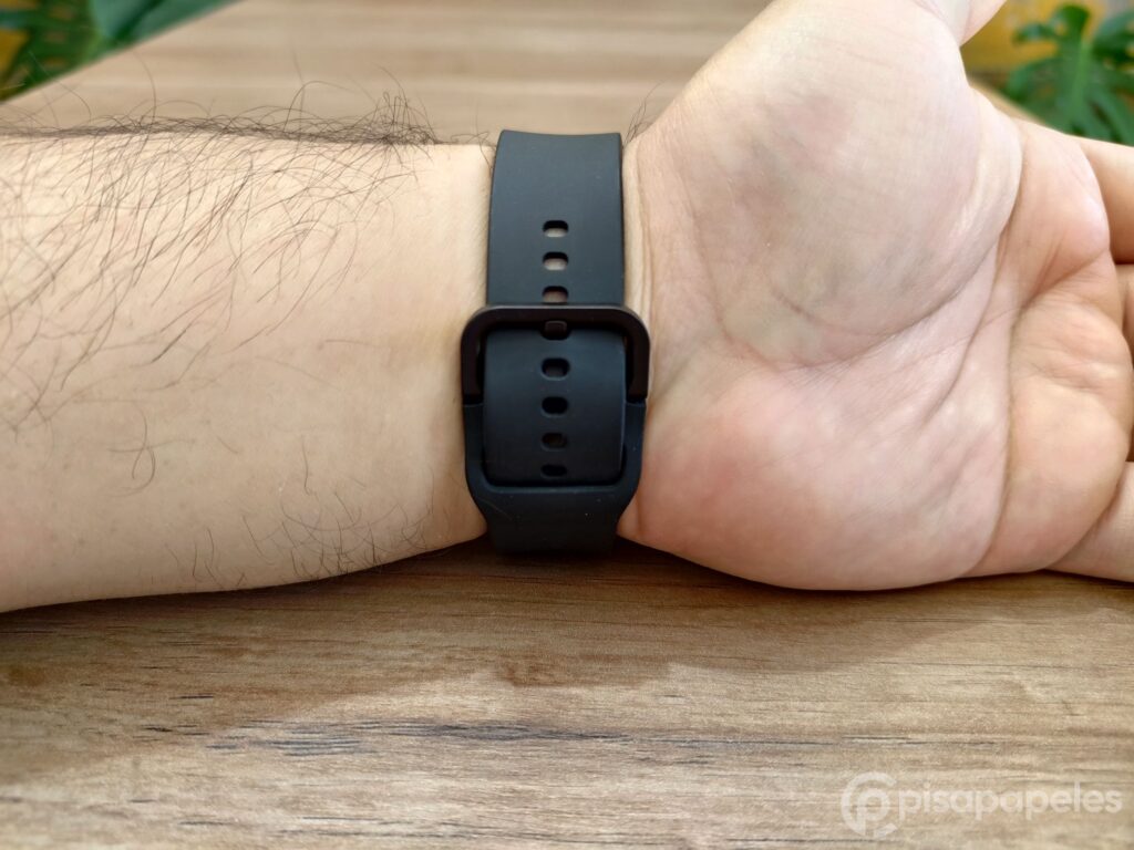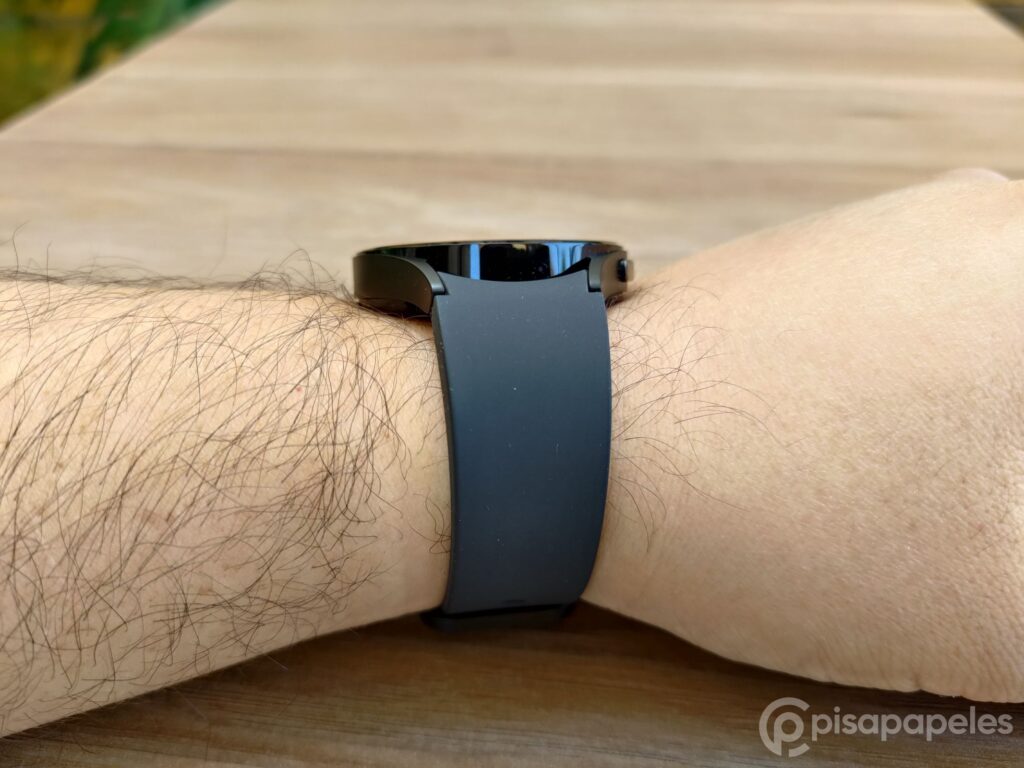 Si bien la correa de silicona no es tan atractiva por su diseño, sí es muy funcional a la hora de realizar actividad física. Sólo basta con cambiar la correa por una metálica o de cuero, si queremos llevar algo más elegante en la muñeca. El reloj es compatible con bandas de 20 milímetros.