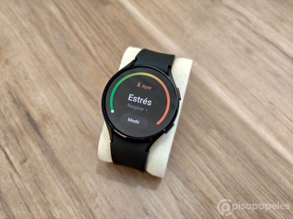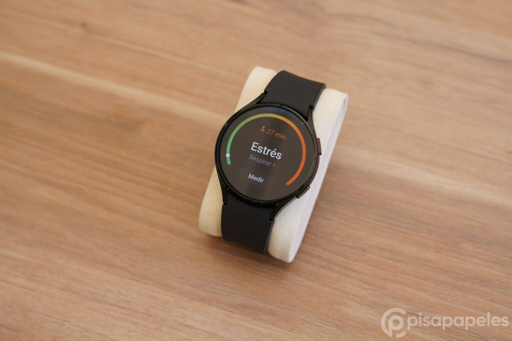 Siguiendo con más funciones de salud, el reloj es capaz de medir nuestro estrés, y si tenemos mucho, el reloj incluye una serie de ejercicios de respiración para tomarnos un descanso y relajarnos.