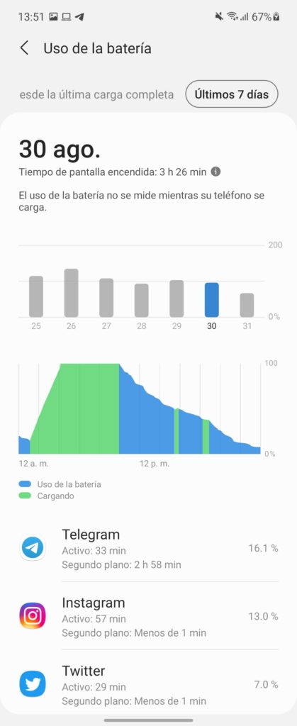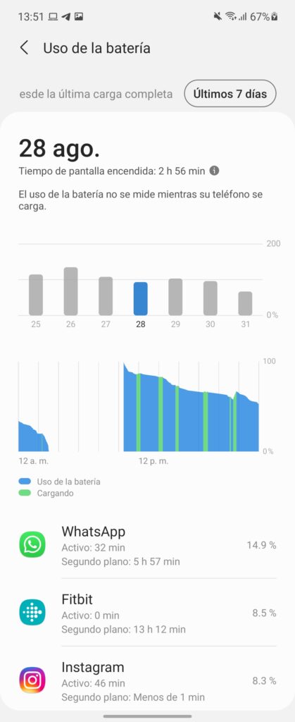Para ser concreto, el Z Flip tiene una batería 3.300 mAh que me ha ofrecido por lo general, entre 2:30 y 3:30 horas de pantalla, dependiendo del día, números bajos considerando que lo conecto al auto durante trayectos. Si le das duro al teléfono, es para andar con una batería externa.