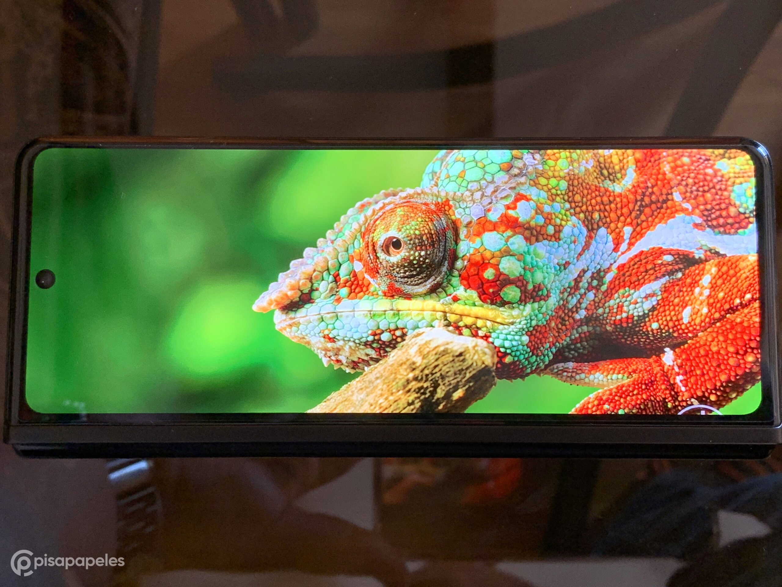 Luego tenemos la pantalla interna, la que es del tipo Dynamic AMOLED 2X de 7,6 pulgadas con resolución de 1768 x 2208 píxeles, compatible con contenido HDR10+ y tiene una tasa de refresco de 120 Hz, además que su brillo puede alcanzar peaks de hasta 1200 nits.