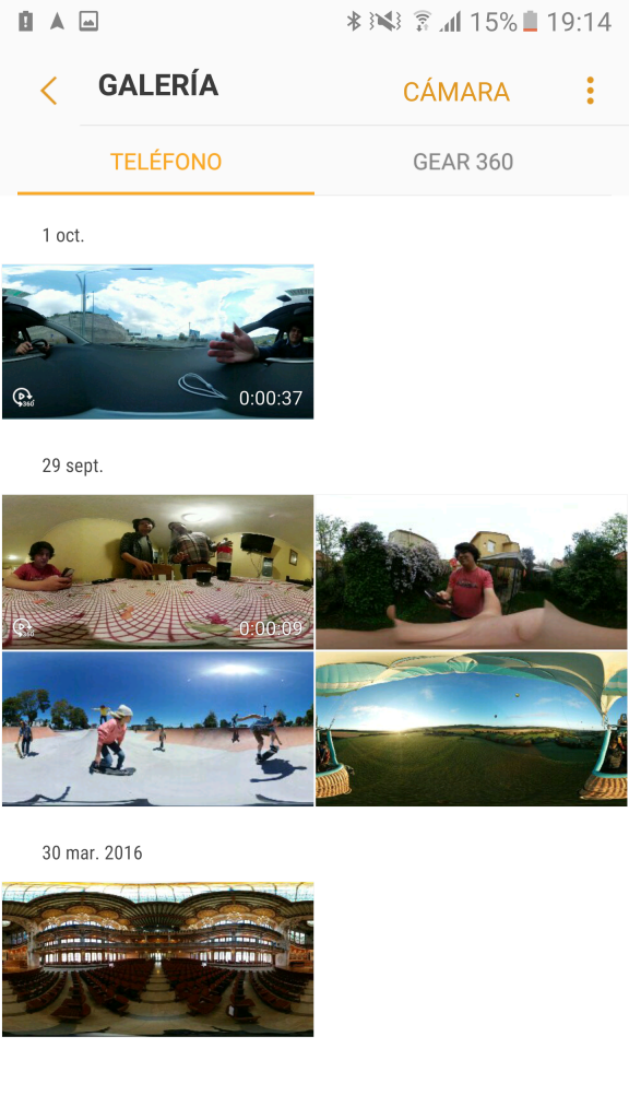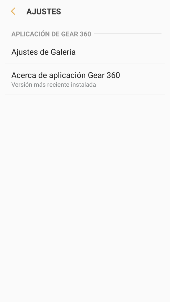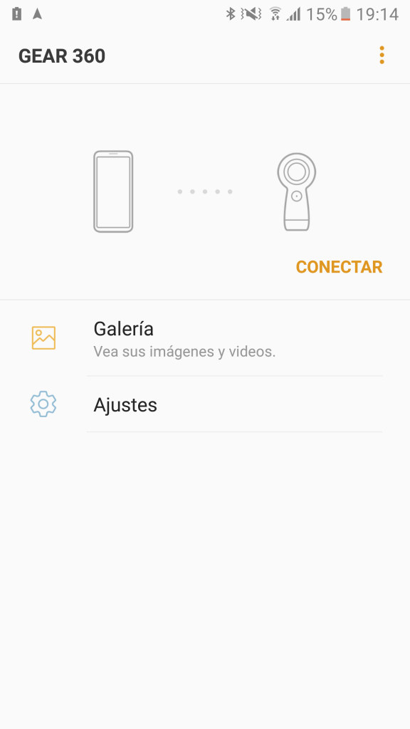 Habiendo dicho esto, la aplicación «Samsung Gear 360» (la cual solo sirve para este modelo, no para el del año pasado) es la que utilizaremos para poder controlar la cámara y visualizar el contenido capturado a través de la misma. Es bastante simple de utilizar, pues tan solo contamos con las opciones de galería, el viewfinder de la cámara y el menú de configuraciones.