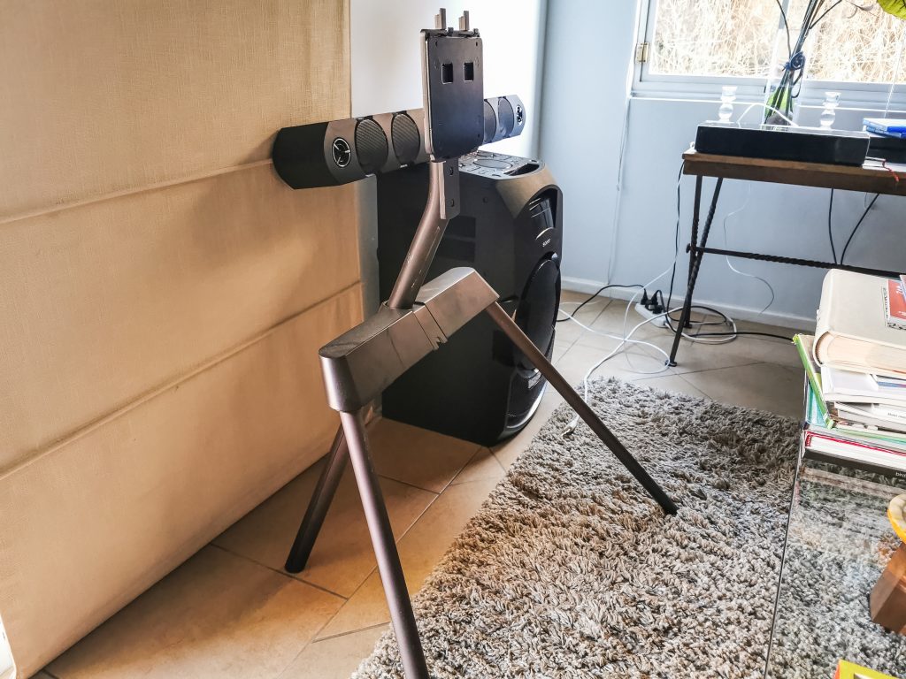 Por supuesto que el equipo está hecho para que pueda ser colgado, y se mimetice de mejor manera con tu sala de estar o habitación. Por motivos obvios, no pude colgar el televisor, pero Samsung nos lo entregó junto al Studio Stand, una base que emula ser un atril para colocar lienzos, y que queda bastante bien con el televisor. Ahora, este stand se vende por separado, y si por abecé motivo no puedes colocarlo en tu muralla, en la caja se incluyen un par de patas metálicas para poder apoyarlo en algún mueble o mesa.