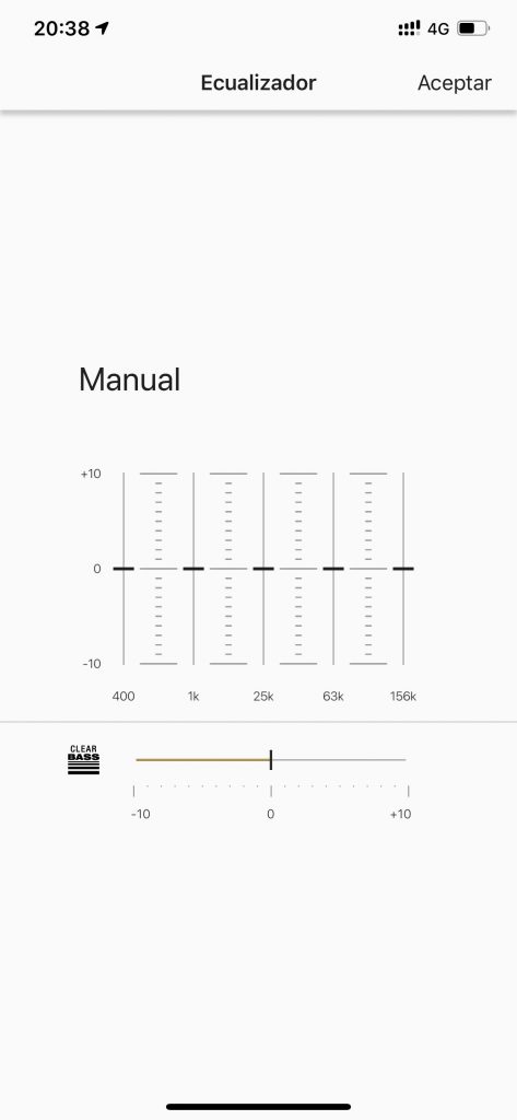 Además podemos controlar su ecualizador de cinco bandas de manera manual y guardar nuestra configuración en dos perfiles personalizados, también podemos controlar el efecto CLEAR BASS.
