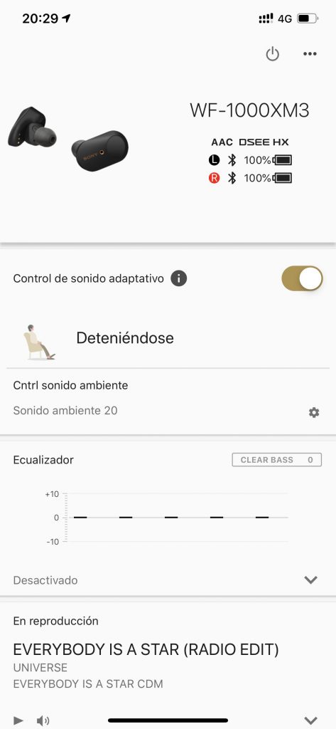 20:48hrs – Ambos audífonos con 20% de carga.
