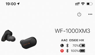 19:00hrs – Audífono izquierdo con 70% de carga, audífono derecho con 100%