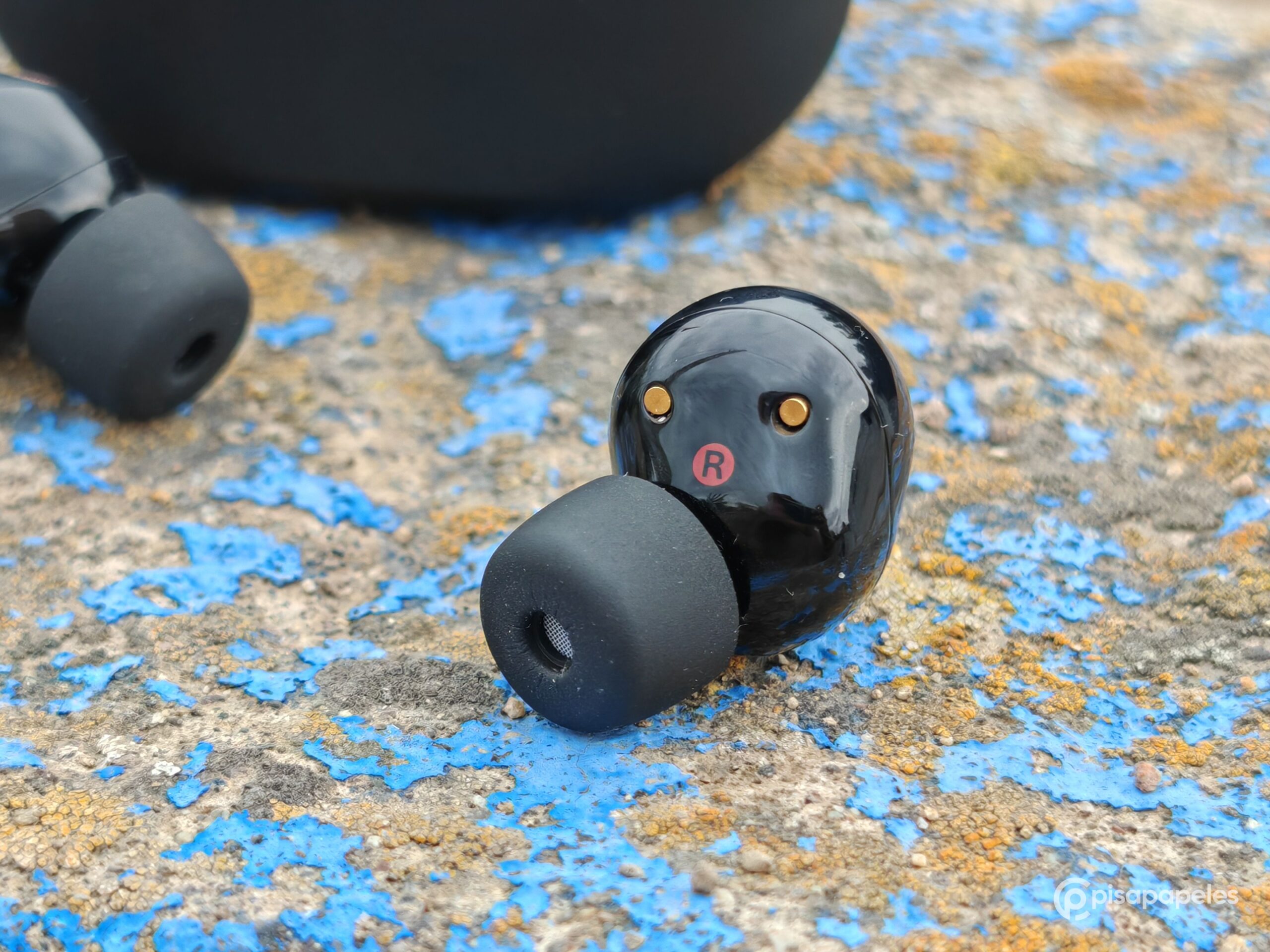 Como ya es costumbre, también notaremos dos pines que nos permitirán cargar la batería de los audífonos cuando los insertamos en el estuche de carga. En esta parte hay unos imanes que atraen los audífonos hacia el estuche y los mantiene ahí de forma segura.