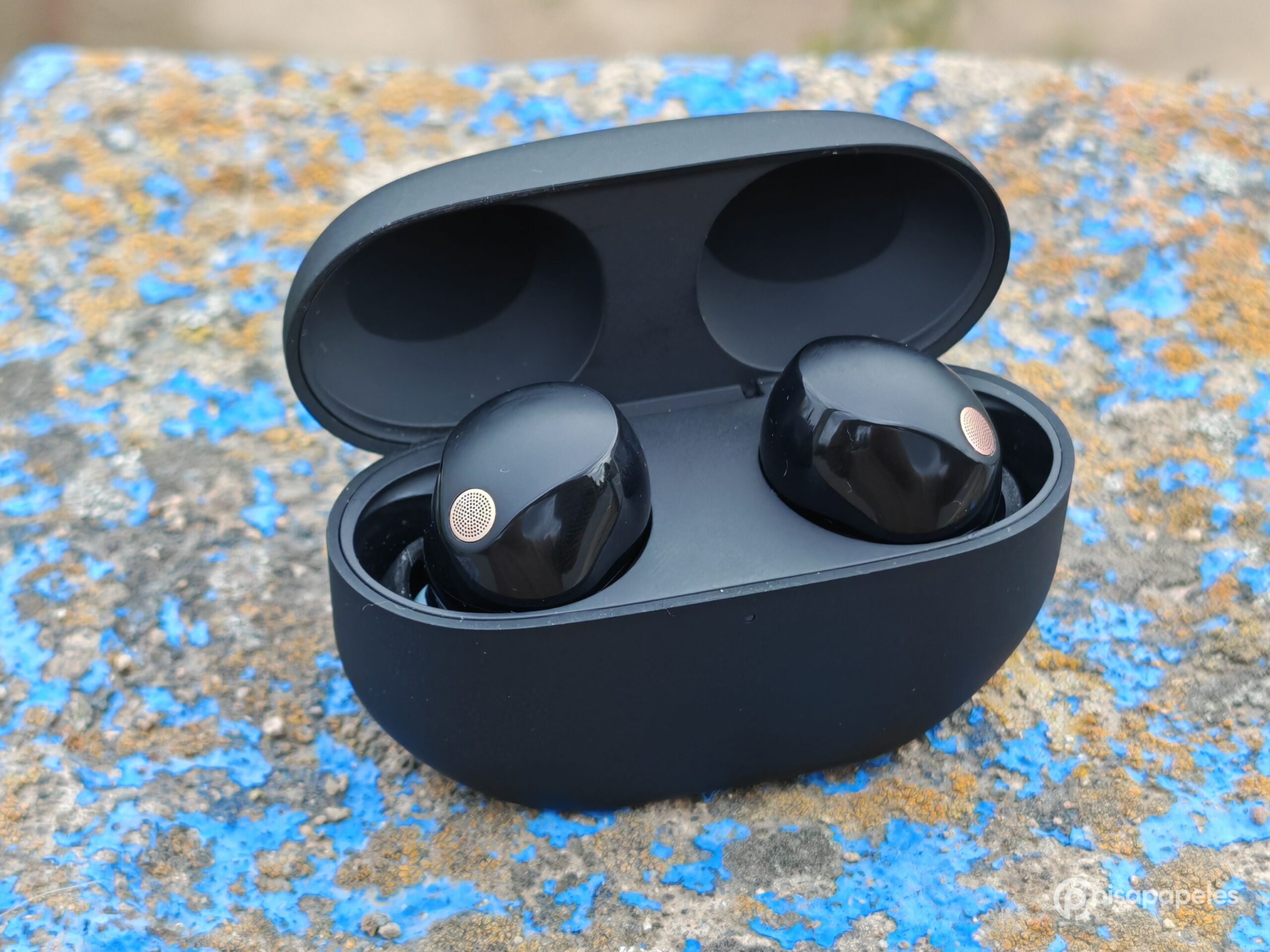 Cuando abrimos la tapa del estuche, nos encontramos con los audífonos que dicen ser un poco más pequeños que los modelos anteriores, los XM4. Lo bueno es que resultan ser bastante cómodos al momento de llevarlos en tus oídos y al menos a mí no se me cayeron o quedaron sueltos.