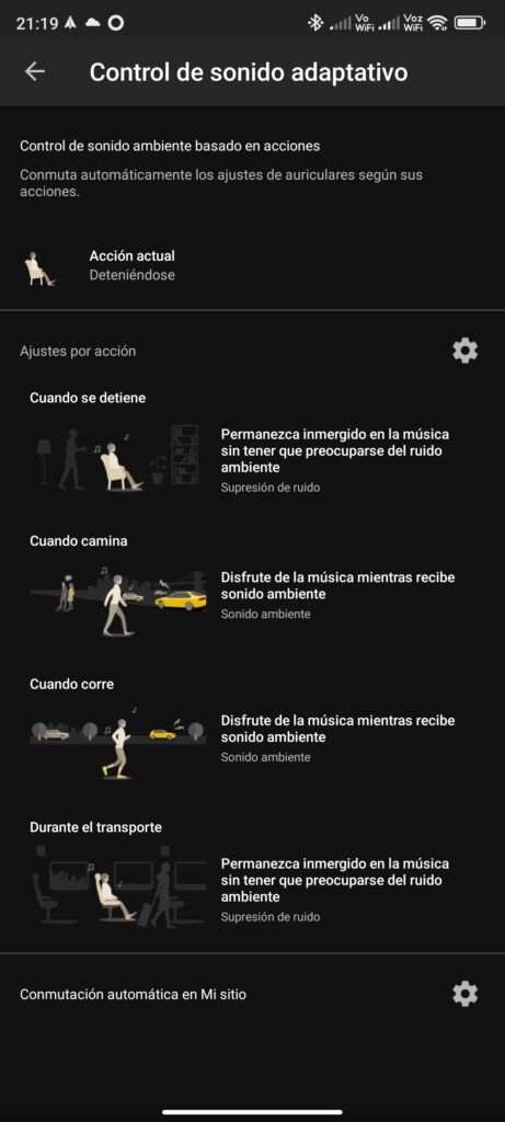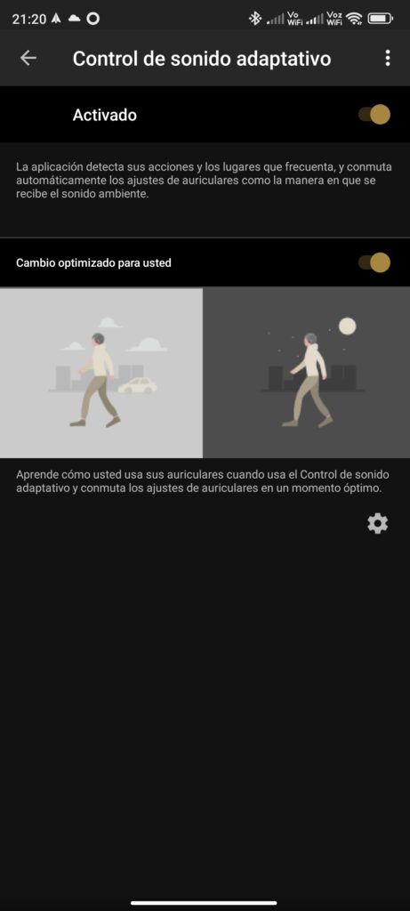 Pero, en este apartado también se encuentra el “Control de sonido adaptativo”, el cual detectará si estamos sentados, caminando, corriendo o si vamos en el transporte público.