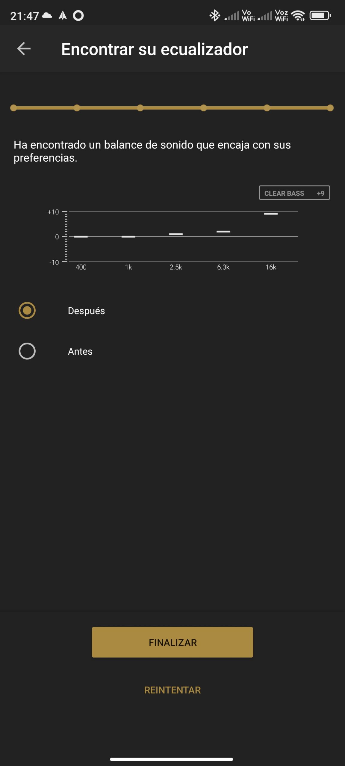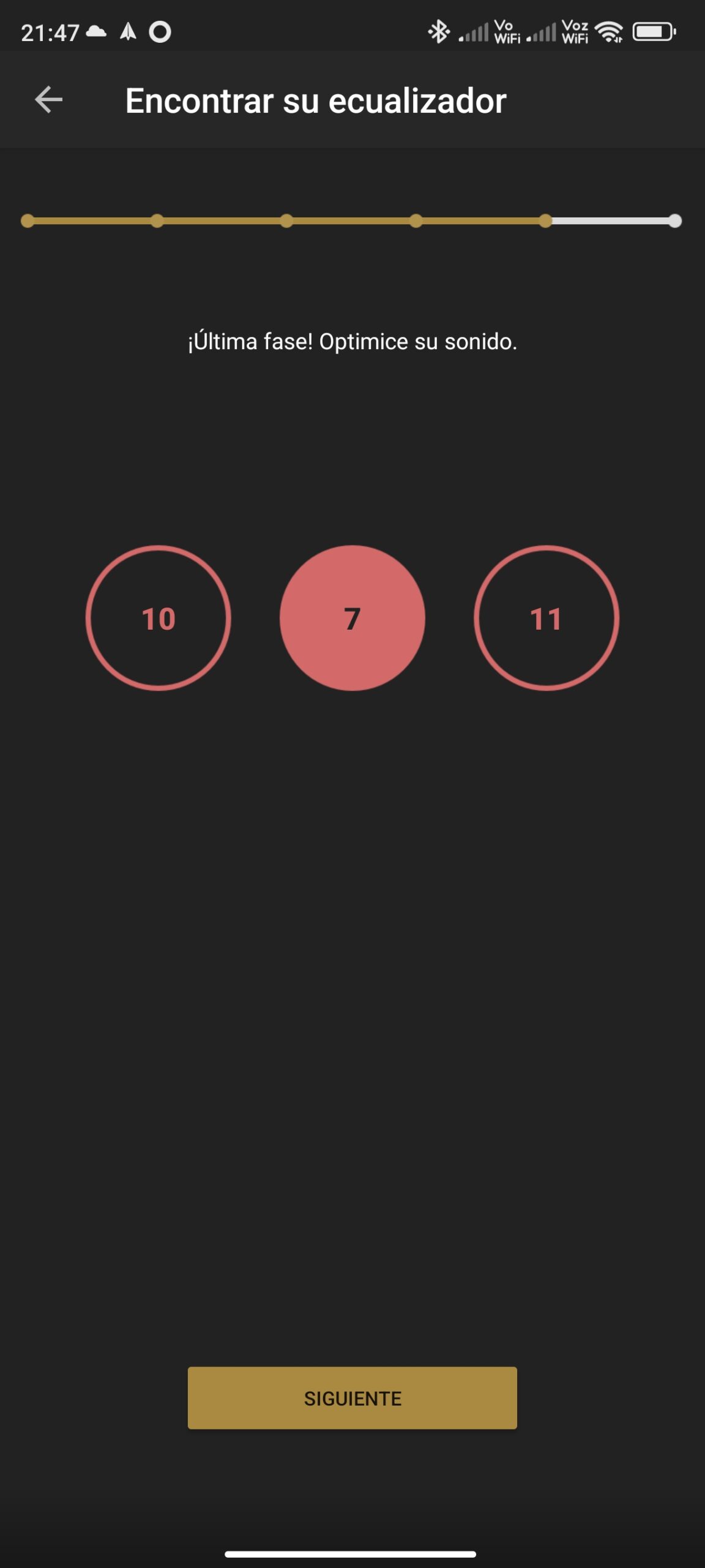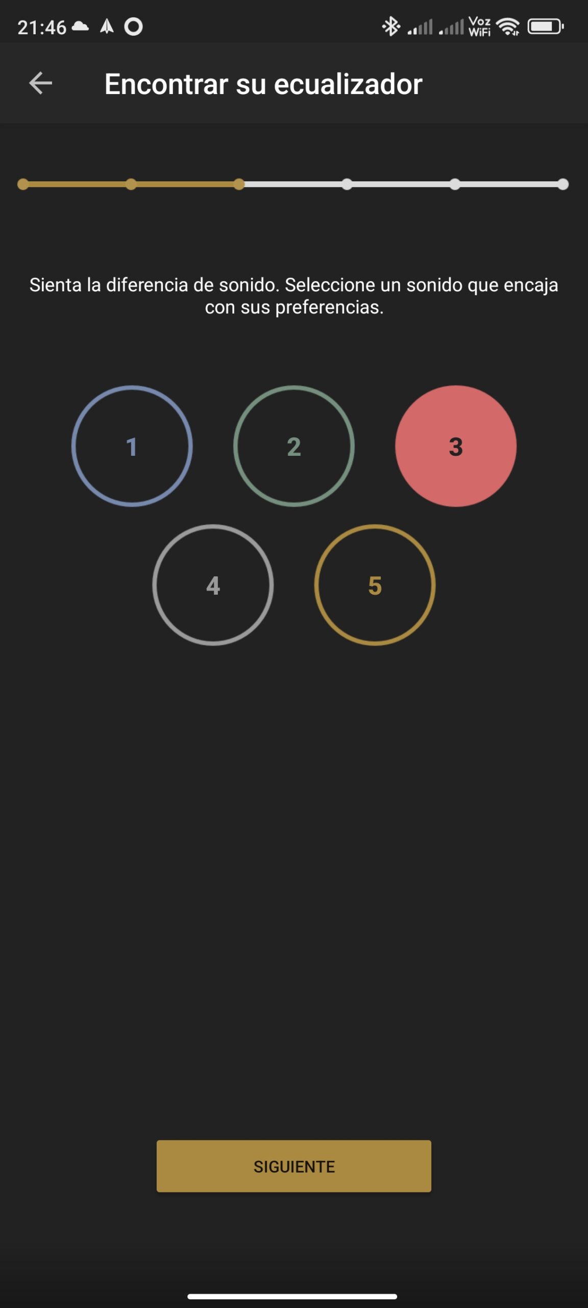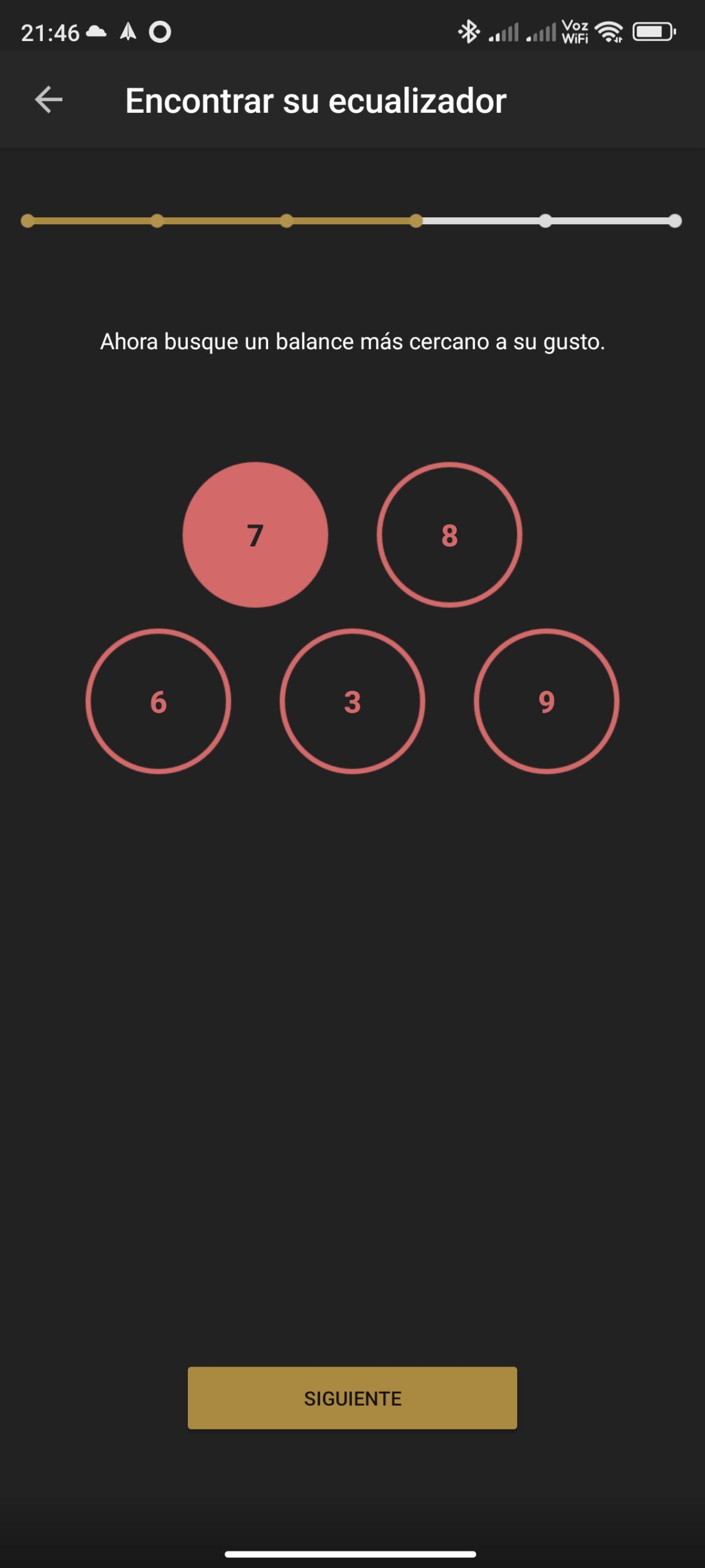 Seguimos con una nueva función que dice estar en fase beta y se llama “Encontrar su ecualizador”. Este apartado te irá mostrando cinco números (del 1 al 5) y cada uno de ellos tienen un ajuste del ecualizador diferente. Entonces, la idea es que vayas eligiendo el que más te gusta cómo se escucha.