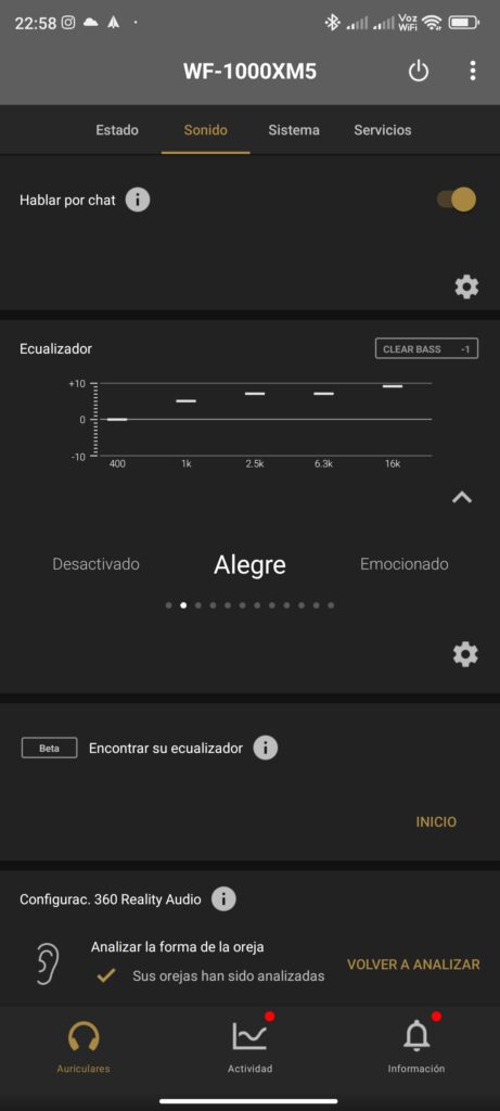Esta es la aplicación que si o si debes instalar en tu smartphone para sacarle el máximo provecho a los audífonos, ya que, con ella podrás controlar la cancelación de ruido, el ecualizador, activar o desactivar algunos códecs, cambiar de dispositivo, actualizar el firmware, configurar el Audio Espacial, activar el DSEE Extreme, entre otras funciones.