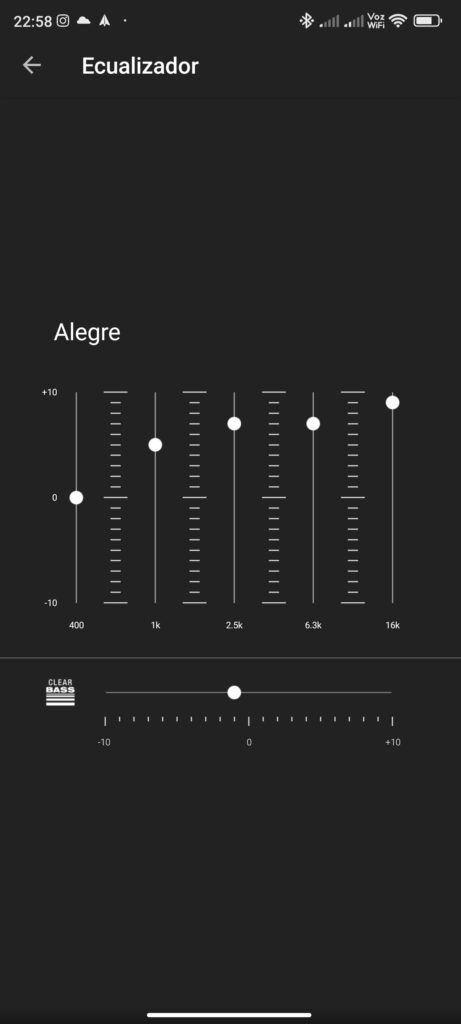 Ahora, si activas su propio ecualizador, ahí vas a notar bajos más profundos, incluso a niveles como si tuvieras un subwoofer en la oreja. Lo único malo de usar el ecualizador de la app al momento de aumentar los bajos, es que al alcanzar niveles altos de volumen, los bajos disminuyen automáticamente para no saturar el audio.