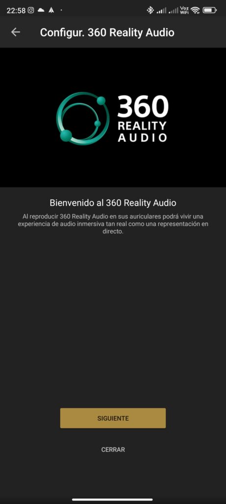 Seguimos con “Configuración 360 Reality Audio”, que como bien lo indica su nombre, nos permitirá ajustar el 360 Reality Audio, y para eso la app nos pide que le saquemos fotografías a nuestras orejas para poder analizarlas y así adaptar el sonido de acuerdo a nuestro a la forma de la oreja.