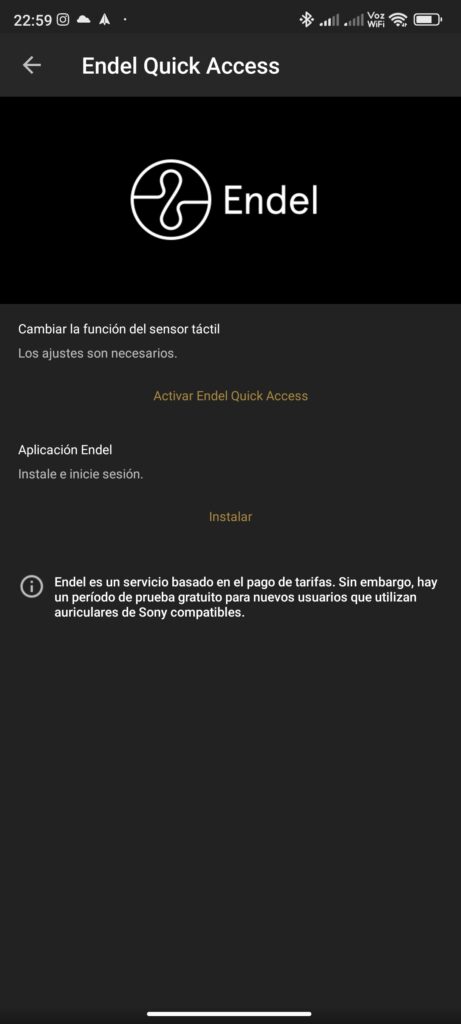 Y la segunda opción llamada “Endel Quick Access” nos permitirá escuchar sonido relajantes del servicio Endel (de pago) al tocar dos veces sobre el sensor táctil izquierdo.